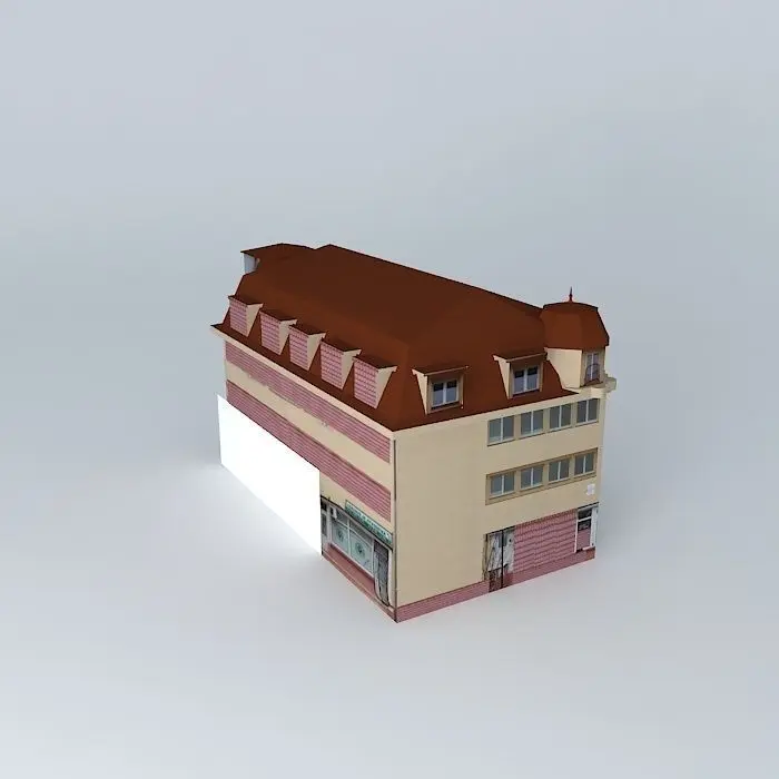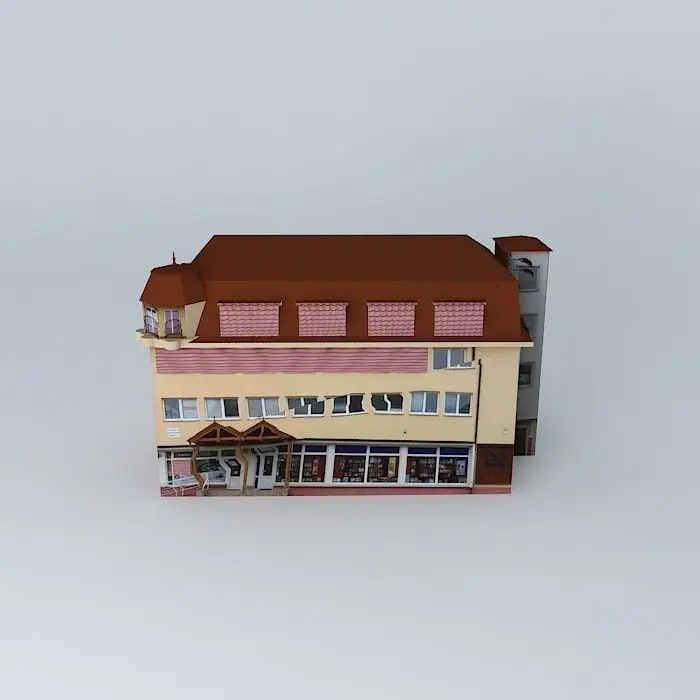 This 3D model was originally created with Sketchup 8 and then converted to all other 3D formats. Native format is .skp 3dsmax scene is 3ds Max 2016 version, rendered with Vray 3.00 Built in the sixties as a three-storey building, from the beginning it worked as a book shop on the ground floor, offices on the second floor photographer, the district headquarters kiipari company's board of directors. After the political renovated felvonóval.A model of the building was built long laposteteju attic that contains the változatott. The District Court against the corner of the building stands, following its formal architecture.