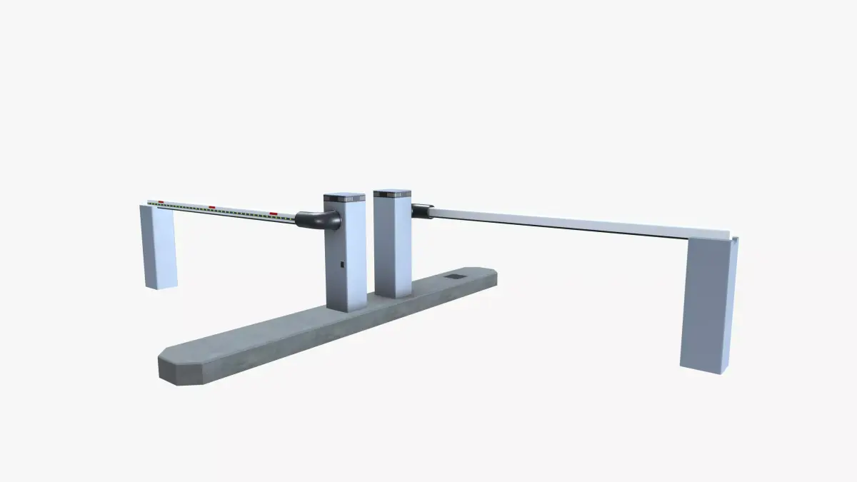 - The 3D model features intricate details that highlight the strength and functionality of the boom barrier system.