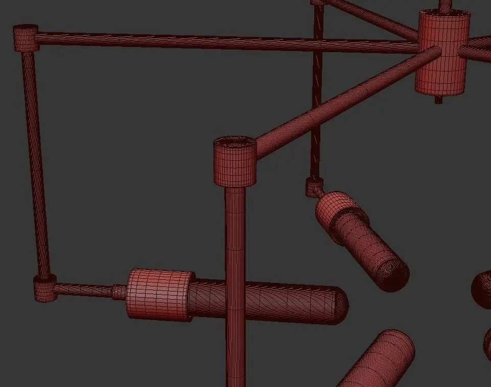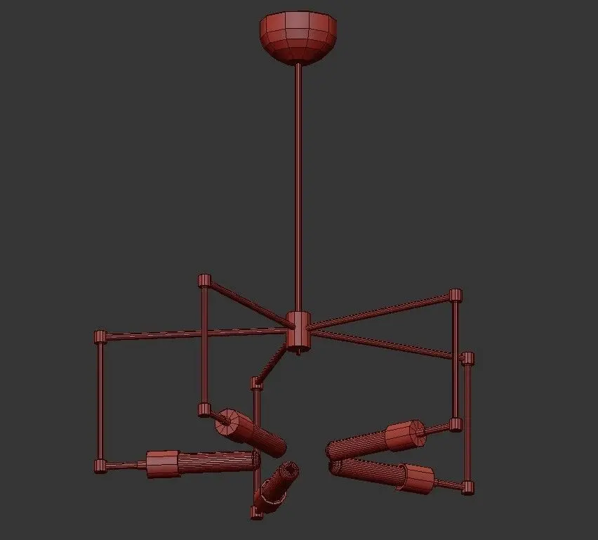 The Boomer Edison Chandelier features 5 arms with two 90 degree right angles that originate from a central stem. Available in Brushed Brass or Bronze. One 6 inch, 12 inch, and 24 inch rods and sloped ceiling canopy are included. ETL listed.