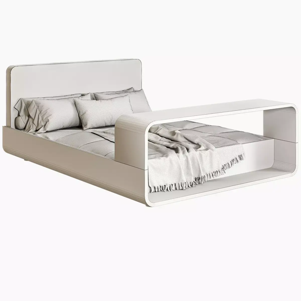 Name: Boomerang Sliding BedType: modelFormat: 3Ds Max 2013Export: OBJRender: VRay (5.x), Corona (6)Polys: 360812Verts: 365560Units: CentimetersDimension: 186.06 x 260.0 x 102.97Manufacturer: teixeiradesignstudioProduct_url: https://teixeiradesignstudio.com/work/boomerangDate: 2023.10.4Description:Sliding table doubles as desk or breakfast tray