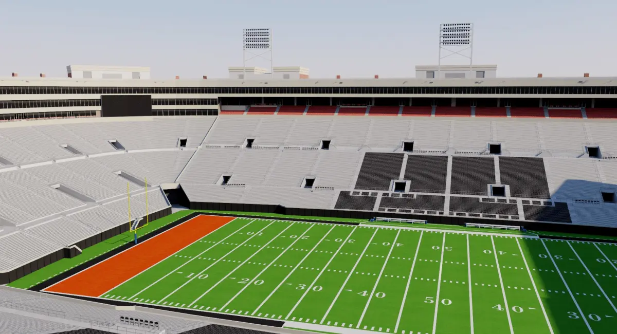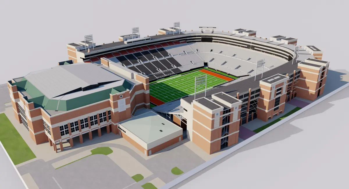 Starter model. Approximate dimensions. Bleachers and seats in 2D texture. Render setup not included.