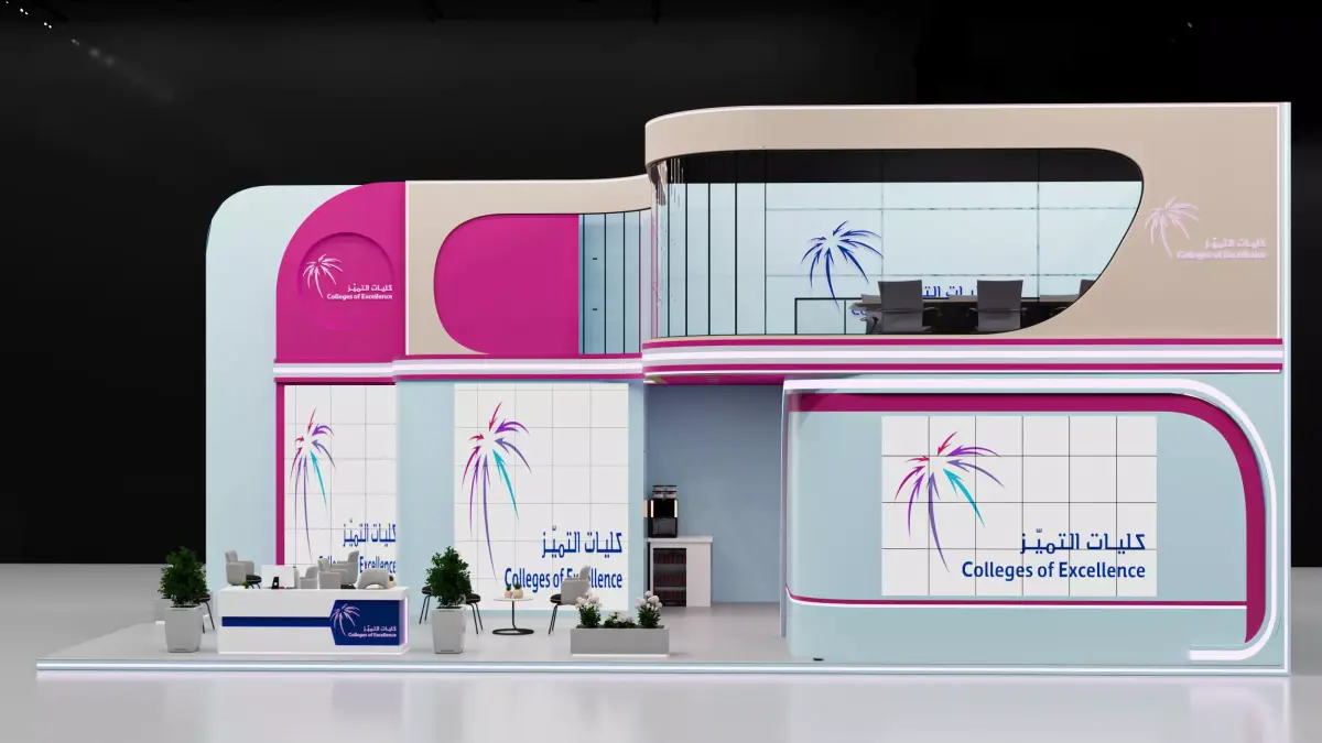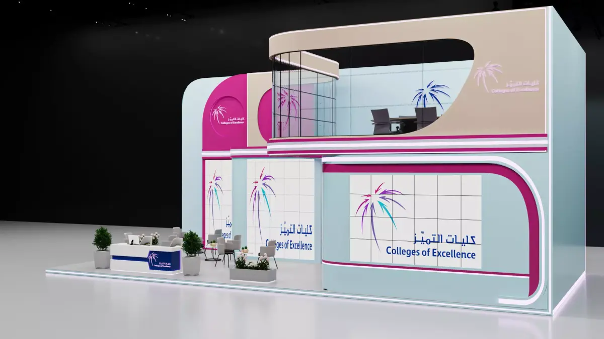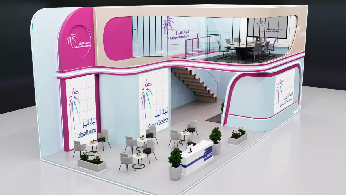 This is an exhibition booth design that you can adjust and use for your required design. I created this with 3ds max 2023 and all the rendering settings are included. adjust your size and render. Branding you will have to make it more beautiful.