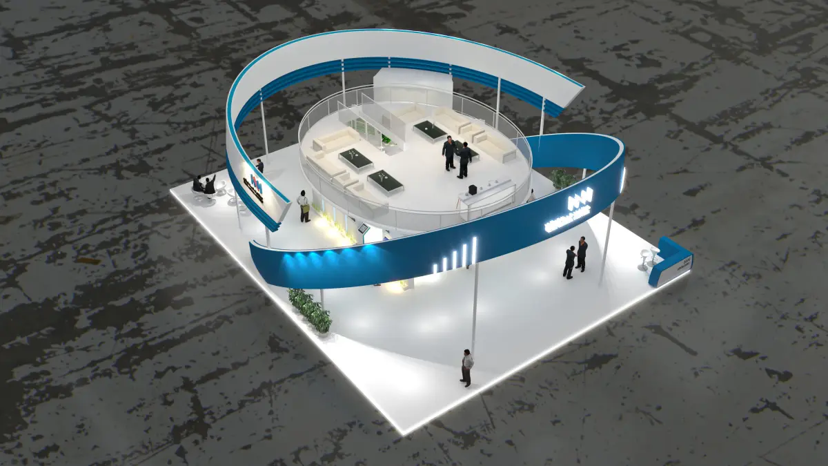 This is an exhibition booth design that you can adjust and use for your required design. I created this with 3ds max 2022 and all the rendering settings are included. adjust your size and render. Branding you will have to make it more beautiful.