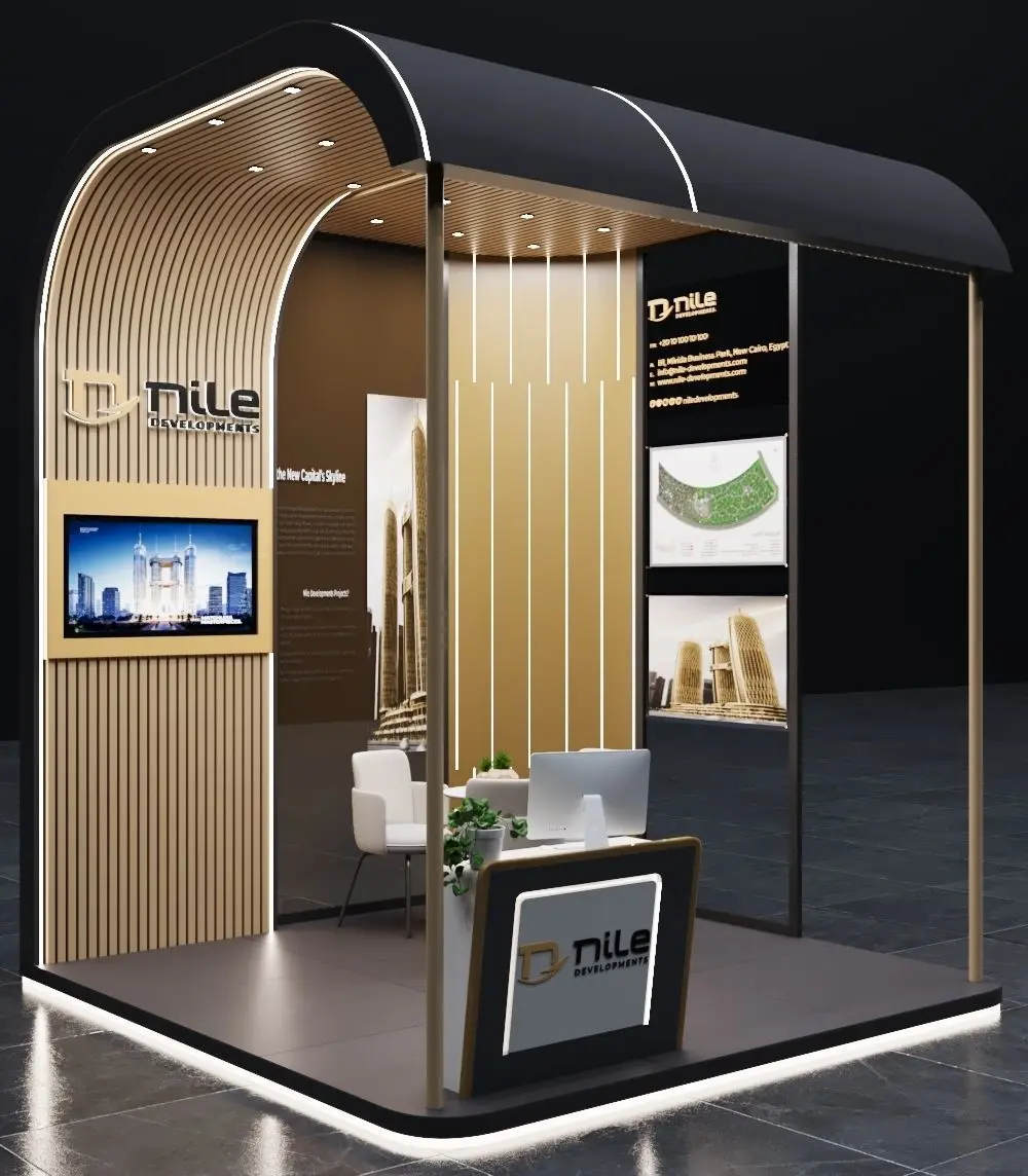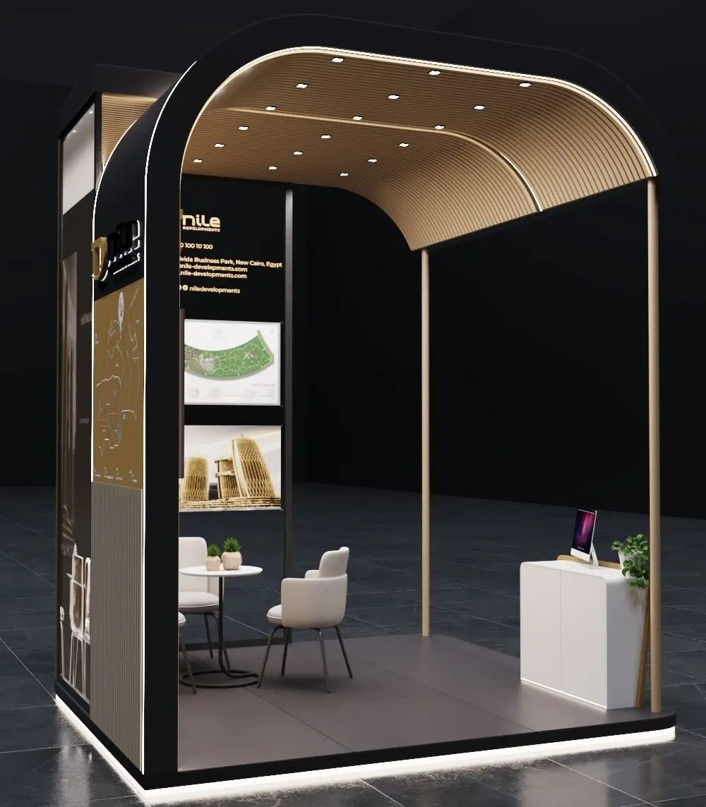 booth 3x3 Simple and fast design and an open file with settings and the same quality as in the pictures easy to modifications I have four years of design experience This is an exhibition booth design what you can ajdust and use for your required design. I created this with 3ds max 2022 and all the rendering settings are included. adjust your size and render. Branding you will have to and make it more beasutiful.