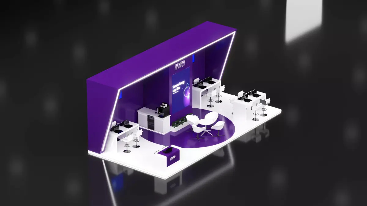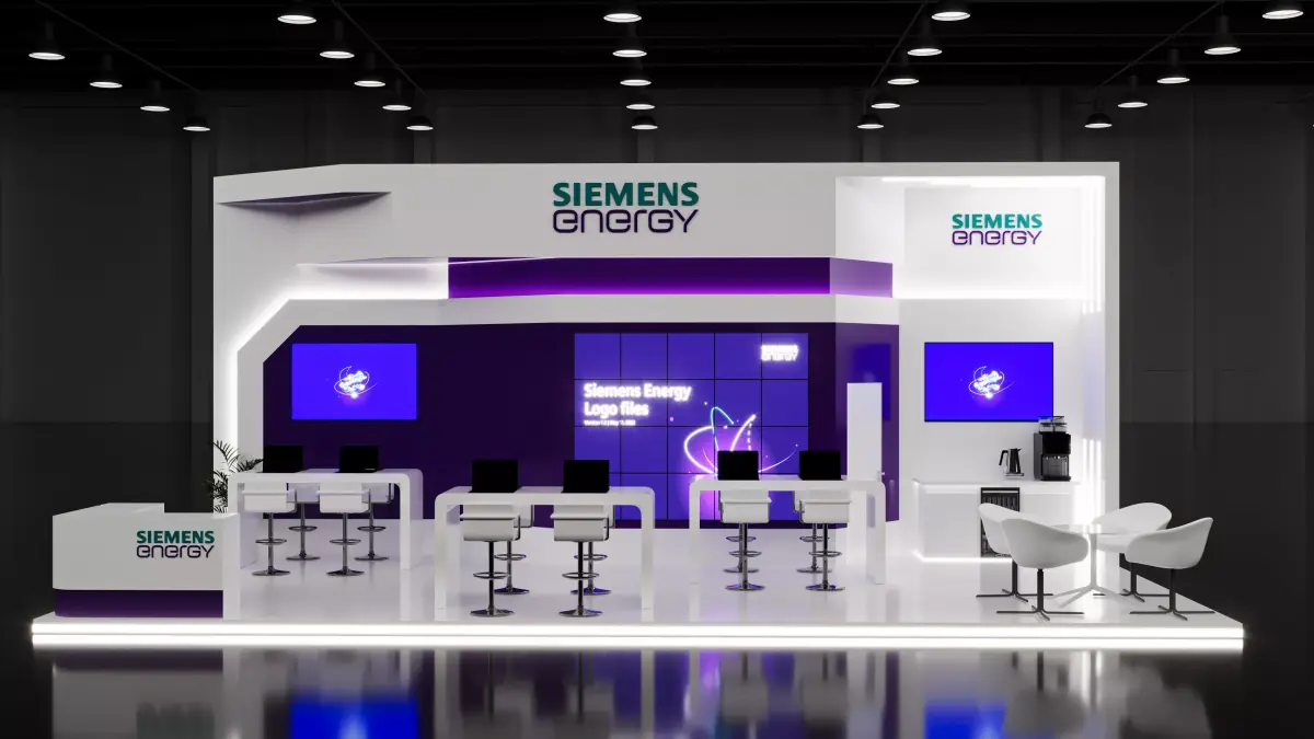 This is an exhibition booth design that you can adjust and use for your required design. I created this with 3ds max 2022 and all the rendering settings are included. adjust your size and render. Branding you will have to make it more beautiful.