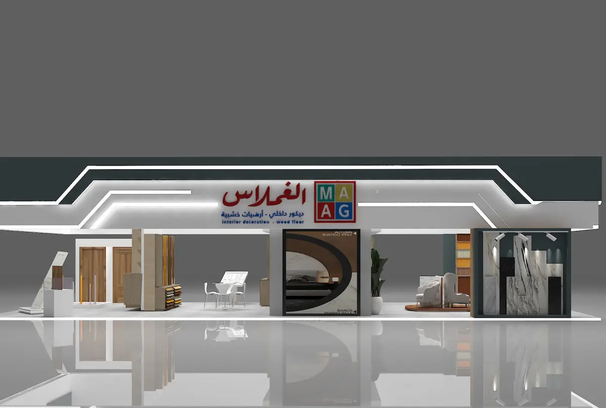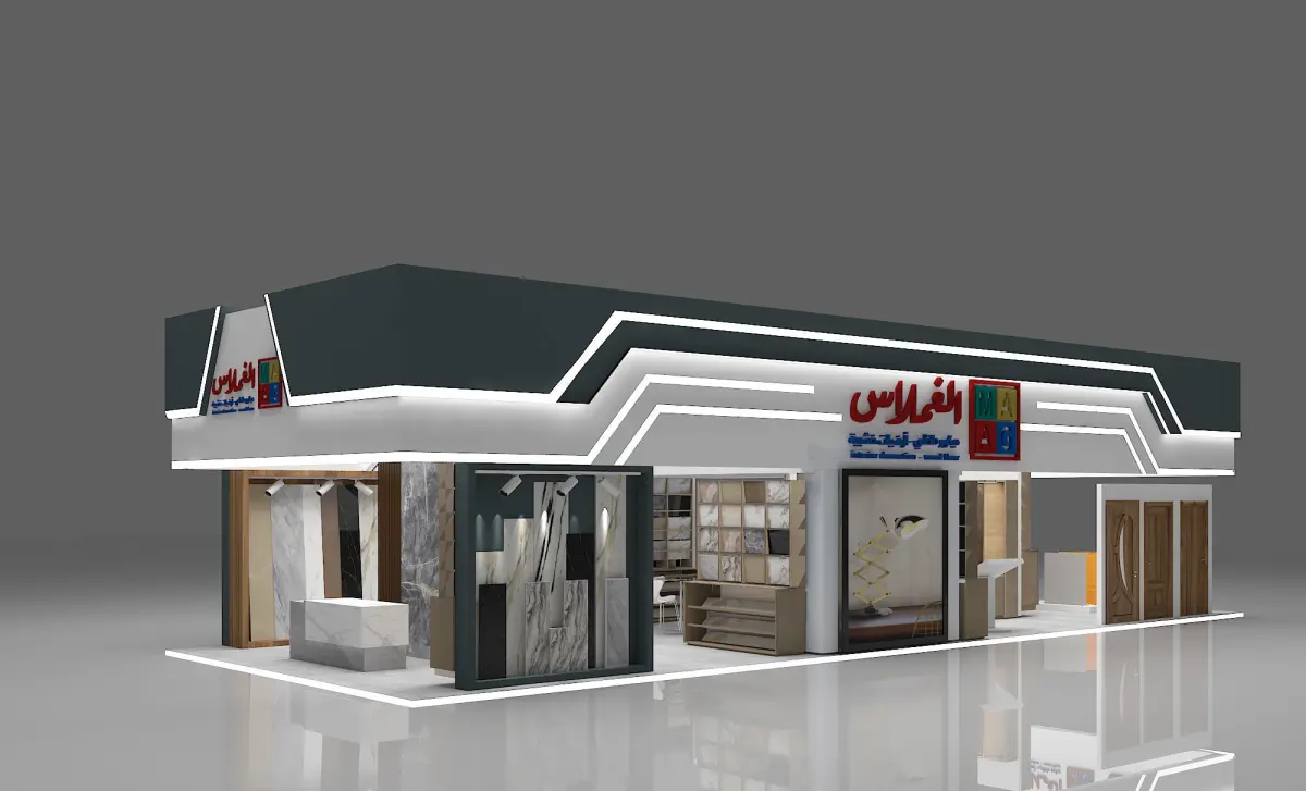 This is an exhibition booth design what you can ajdust and use for your required design. I created this with 3ds max 2022and all the rendering settings are included. adjust your size and render. Branding you will have to and make it more beasutiful.