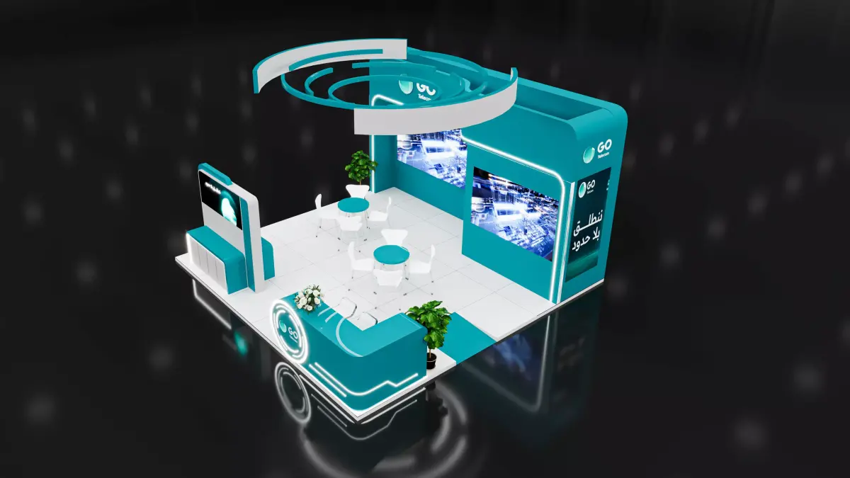 booth 6x6 an open file with settings and the same quality as in the pictures easy to modifications I have four years of design experience This is an exhibition booth design what you can ajdust and use for your required design. I created this with 3ds max 2022 and all the rendering settings are included. adjust your size and render. Branding you will have to and make it more beasutiful.