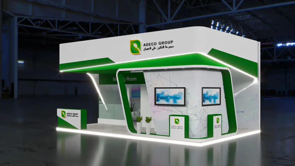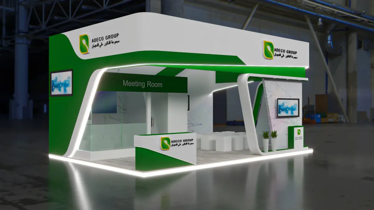 This is an exhibition booth design that you can adjust and use for your required design. I created this with 3ds max 2023 and all the rendering settings are included. adjust your size and render. Branding you will have to make it more beautiful.