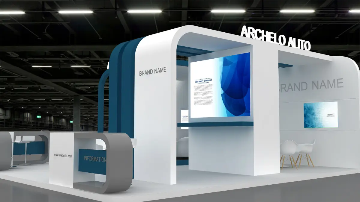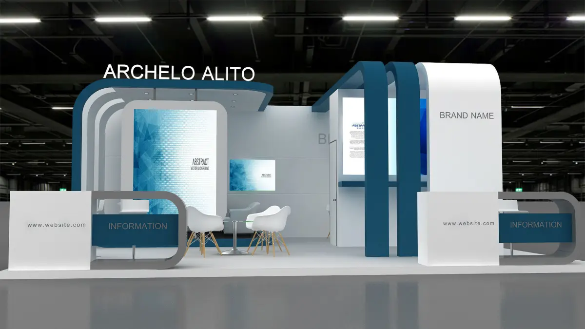 3D Model Exhibition booth Tradeshow Fully applicable with correct Size and scaleinclude design all necessary area in Exhibition and Booth Such as Vip and Storage and Counters and also Stand for products
