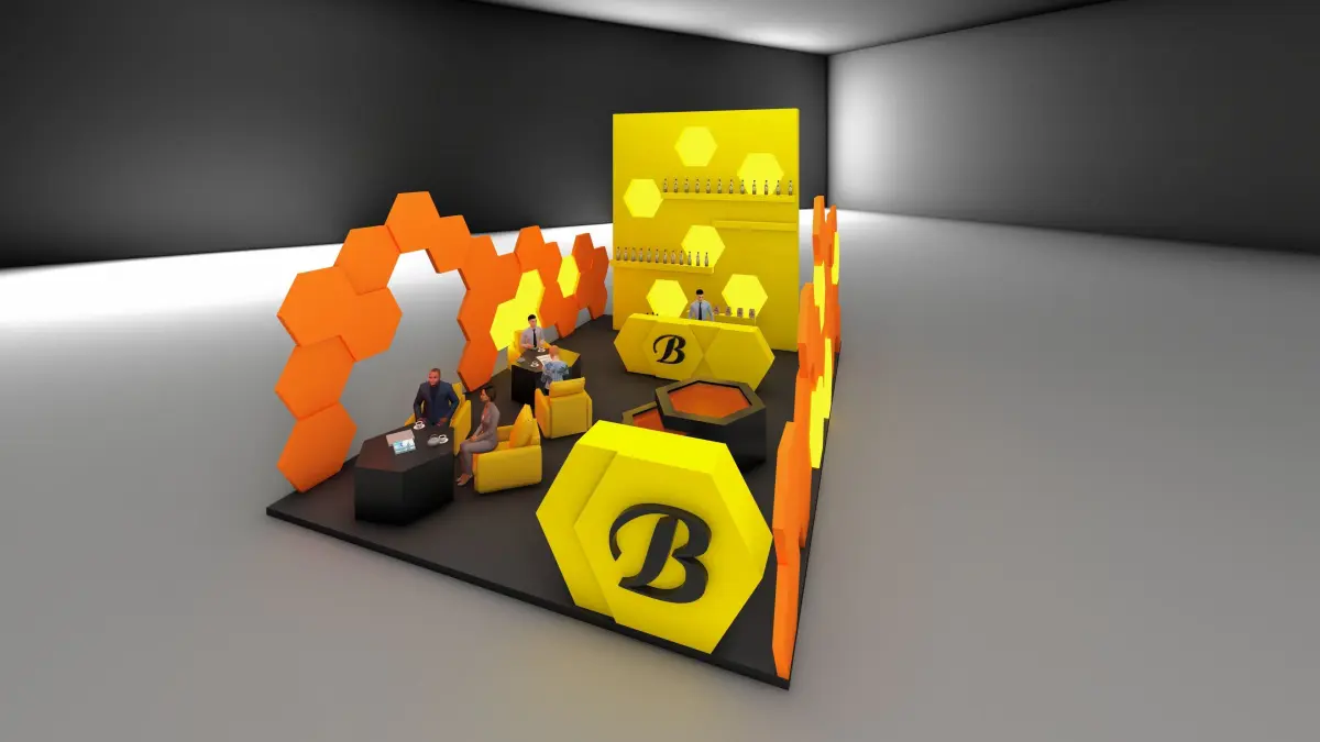 70mm - BOOTH EXHIBITION DESIGN --- a partly enclosed compartment or partitioned area, as in a restaurant or music store, equipped for a specific use by one or more persons. a temporary structure of any material, as boughs, canvas, or boards, used especially for shelter