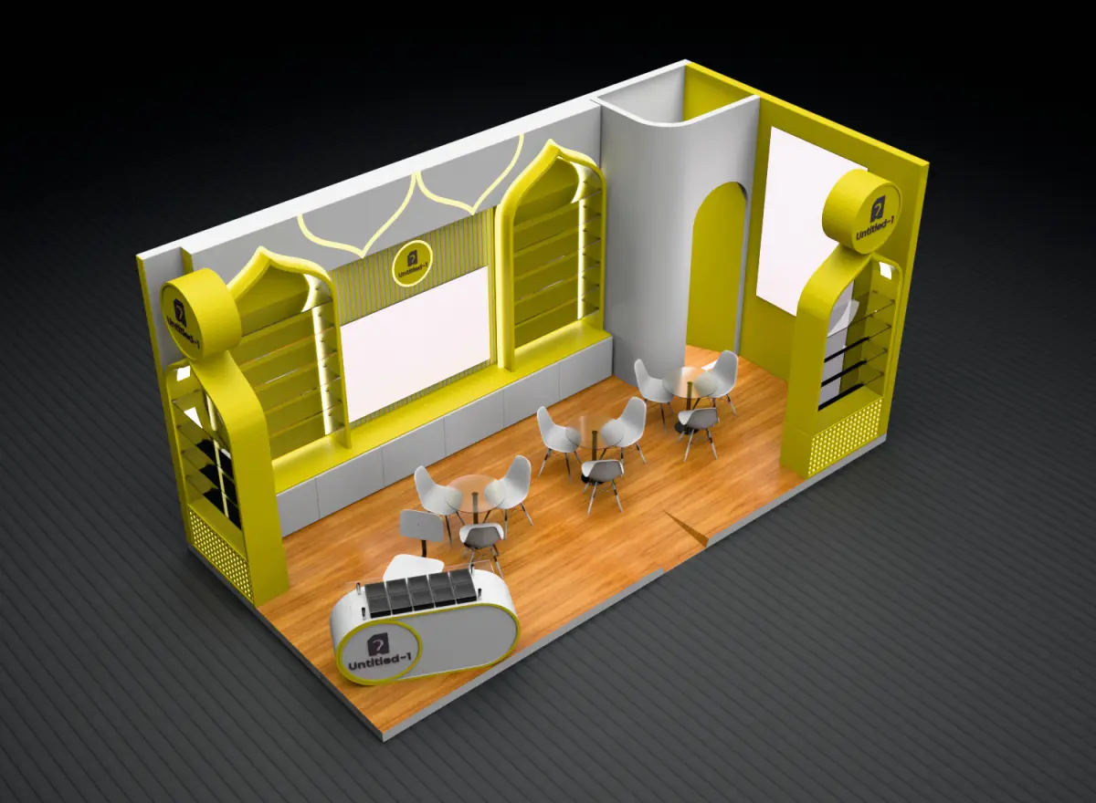 This 3x6m booth exhibition stand features a modern and functional design, perfect for showcasing your brand at trade shows and events. With a height of 300cm, it offers a balanced and visually appealing structure. The two open sides provide excellent visibility and ease of access for visitors. The stall includes designated areas for product displays, a reception counter, and seating arrangements for client interactions. This 3D model is ideal for creating a professional and inviting presence at any exhibition or expo.