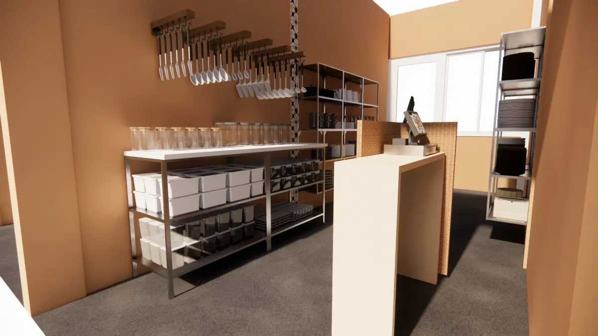 A store that provides a concept between selling clothes, t-shirts, jackets, jeans side by side with a store that sells kitchen necessities such as plates, glasses, spoons, forks, bottles, dining places and other handicraft products