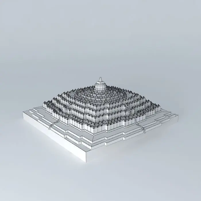 This 3D model was originally created with Sketchup 8 and then converted to all other 3D formats. Native format is .skp 3dsmax scene is 3ds Max 2016 version, rendered with Vray 3.00 Borobudur is a ninth-century Mahayana Buddhist Monument in Magelang, Central Java, Indonesia. The monument comprises six square platforms topped by three circular platforms, and is decorated with 2,672 relief panels and 504 Buddha statues.A main dome, located at the center of the top platform, is surrounded by 72 Buddha statues seated inside perforated stupa.