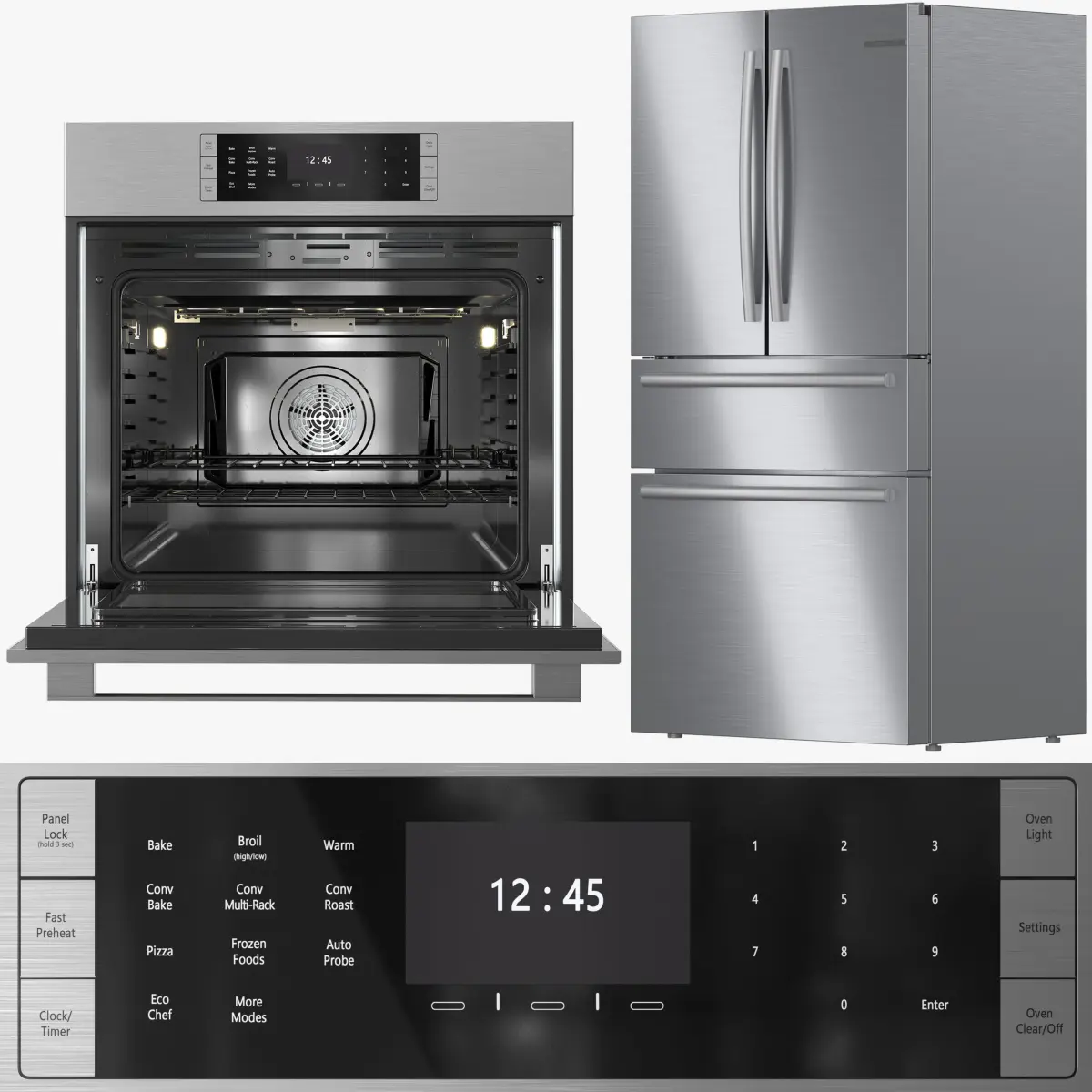 1- 800 Series French Door Bottom Mount Refrigerator Easy clean steel stainless
