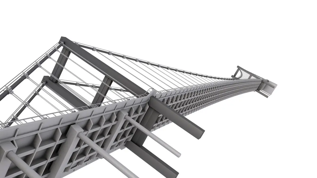 Detailed arches, piers, structural beams, and support elements