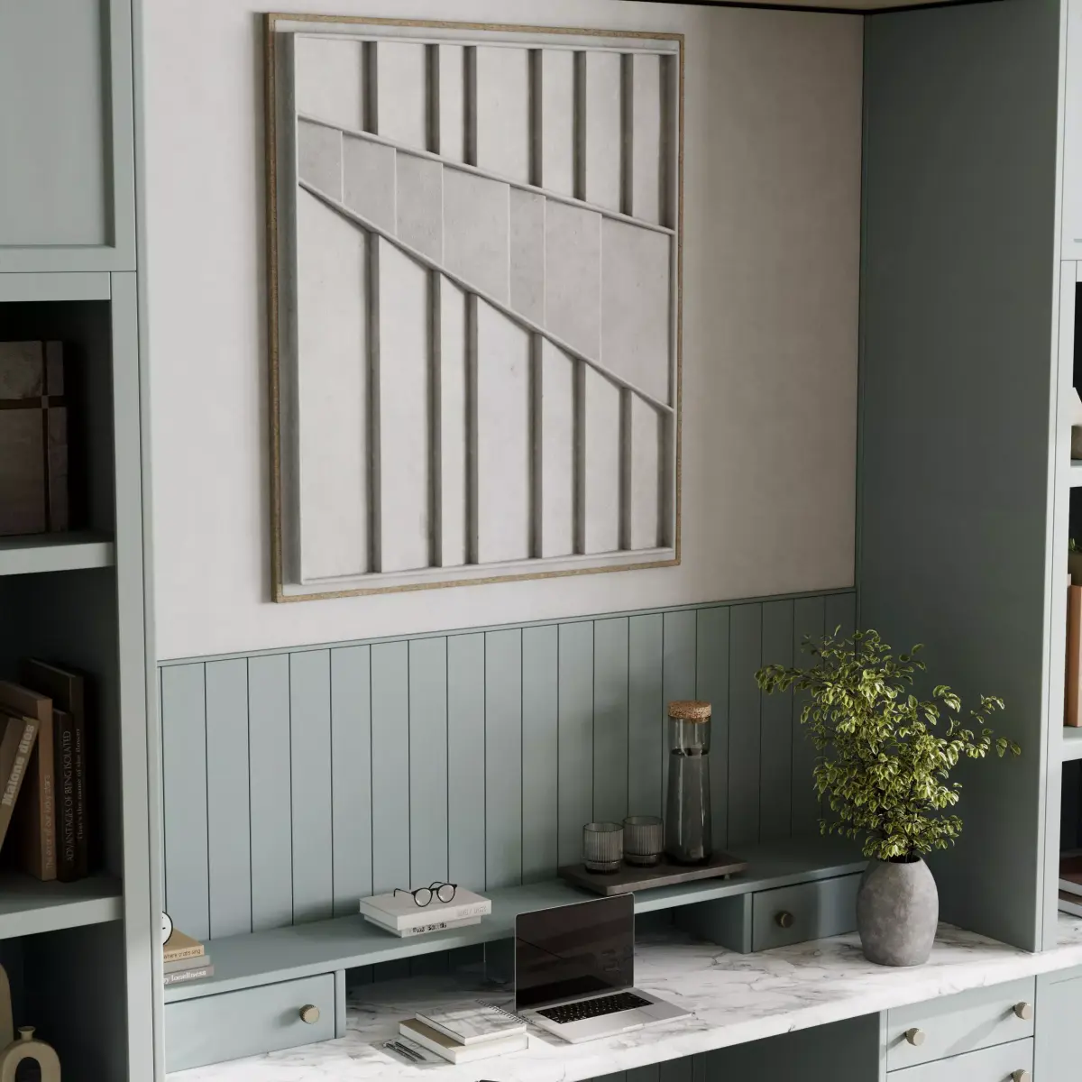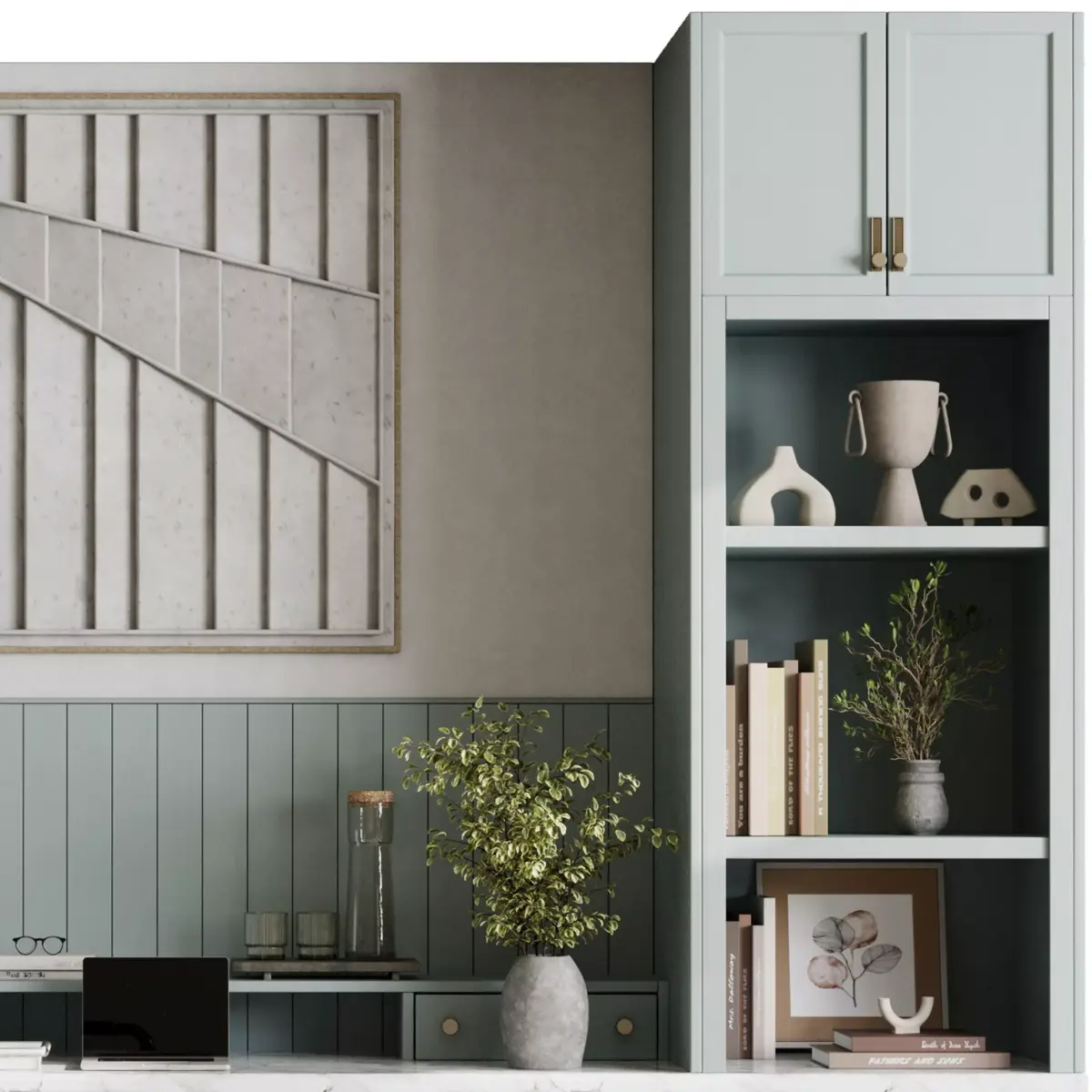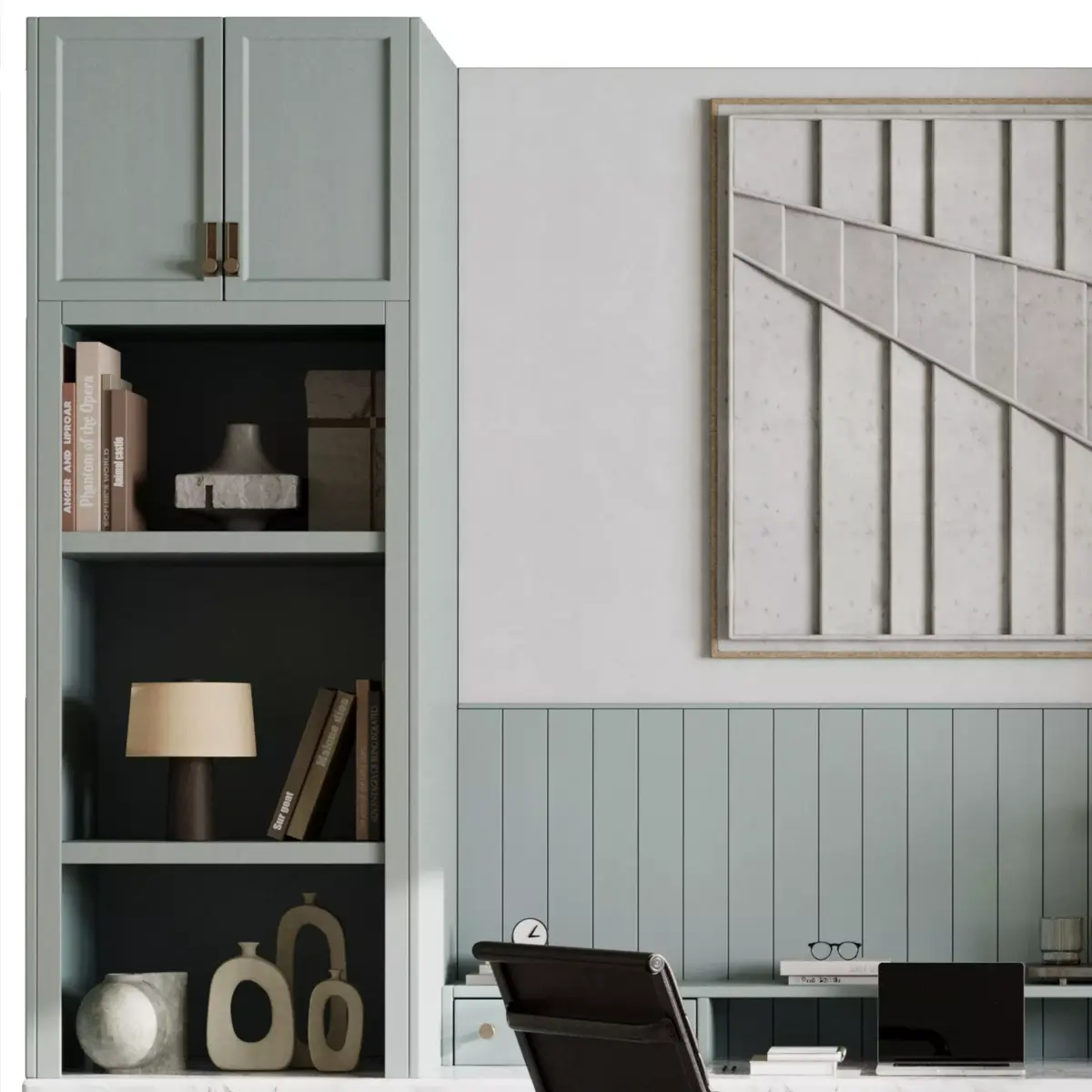 Workplace, office ,desk, chair, furniture, interior, potted plant, books, table, chair, plant, book, laptop, vase, statue, shelf, library, light,sculptures, decor, interior, , lamp Desktop, office room, closed space, office, decoration, wooden shelves ,contemporary, open, scandinavian, wabi, sabi, japandi, minimalism, shelve, scandinavian, wabi, sabi, japandi, minimalism, shelve,