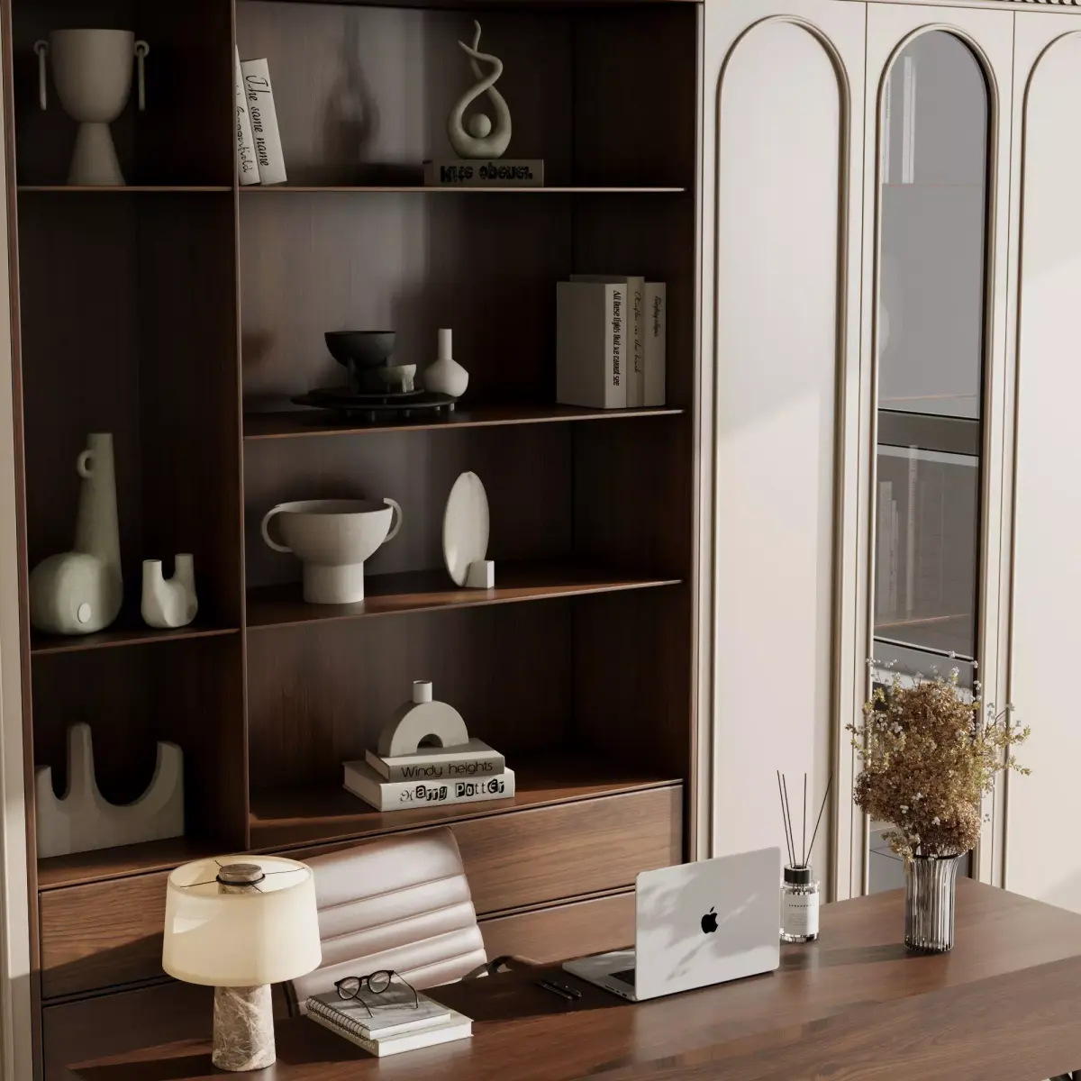 Workplace, office ,desk, chair, furniture, interior, potted plant, books, table, chair, plant, book, laptop, vase, statue, shelf, library, light,sculptures, decor, interior, , lamp Desktop, office room, closed space, office, decoration, wooden shelves ,contemporary, open, scandinavian, wabi, sabi, japandi, minimalism, shelve, scandinavian, wabi, sabi, japandi, minimalism, shelve