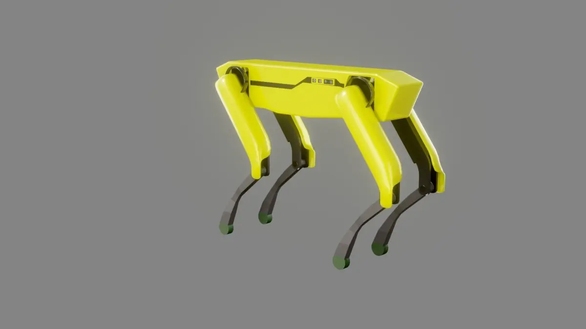 This is a 3D model of Boston Dynamics robotic Dog Spot.This 3d model is made with Blender 2.91.All the previews are rendered in EEVEE render engine.The 3D model is textured with PBR textures.This is Game ready 3D model, ready for game engine.This is Rigged and Animated 3D model.