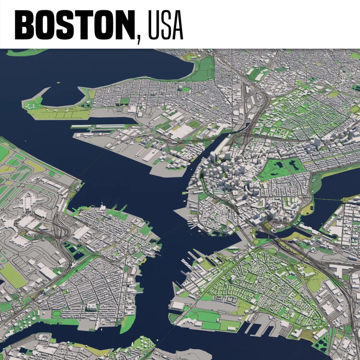 A DETAILED 3D MODEL CITY MAP OF BOSTON, USA: