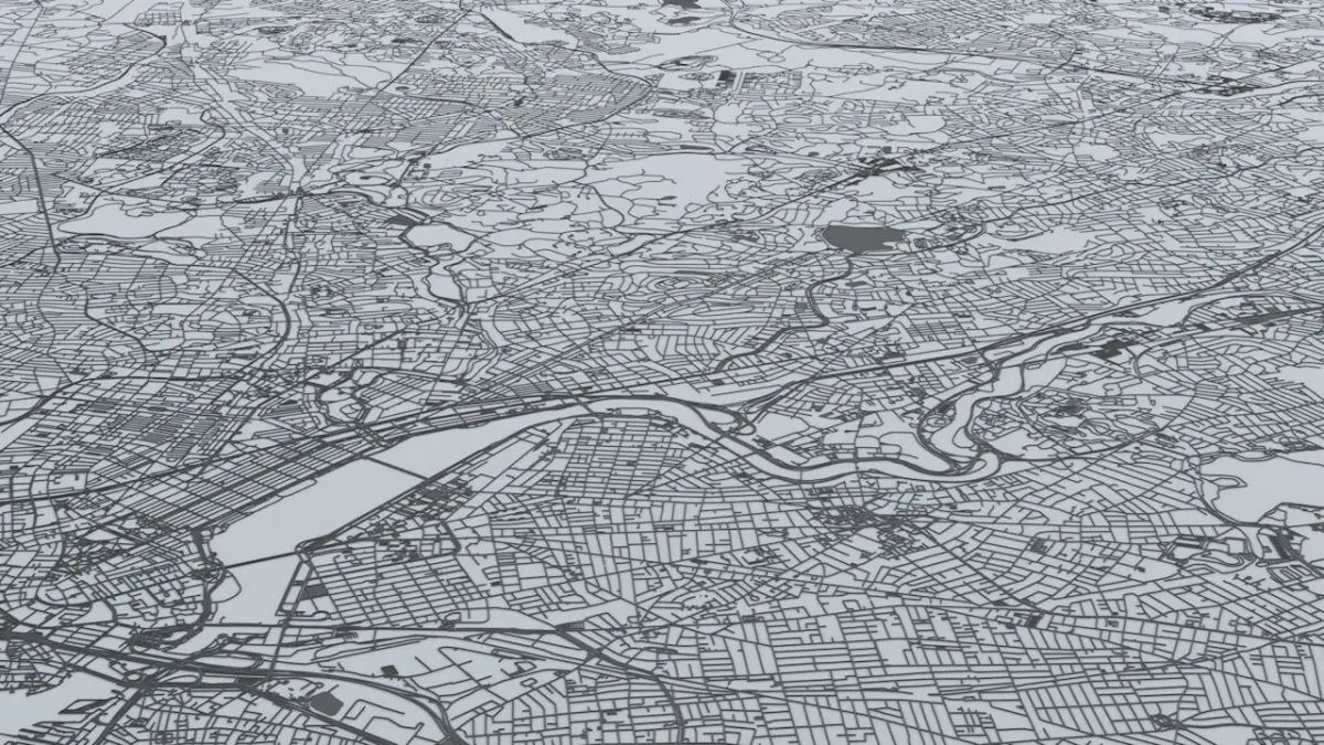 - the model is positioned on a flat surface (road network is on the “floor” - no elevation data included)
