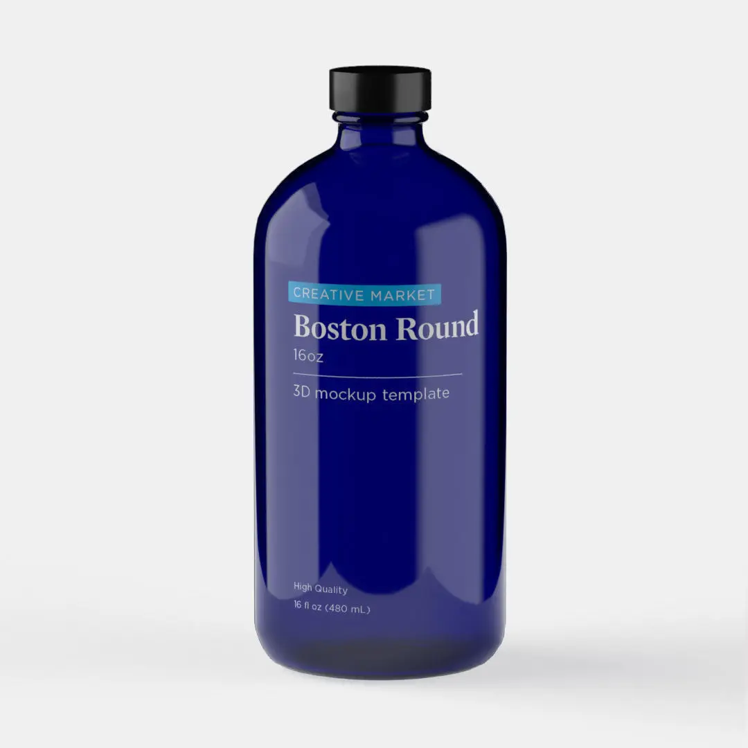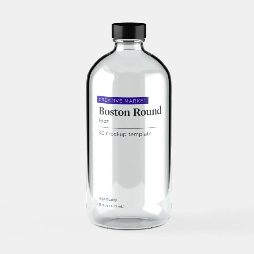Download and customize this 16oz Glass Boston Round Bottle; created for Adobe Dimension or your favorite 3D program. Beautifully showcase your product packaging and labeling designs in a professional and photorealistic style. Featuring replaceable materials and color. You can also customize and personalize the background image/colors and change the mood of the lighting.