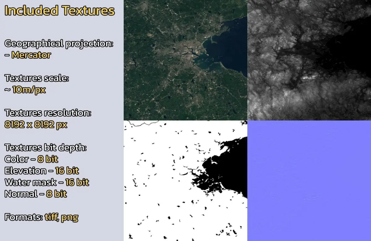 - Textures resolution: ~10m/px
