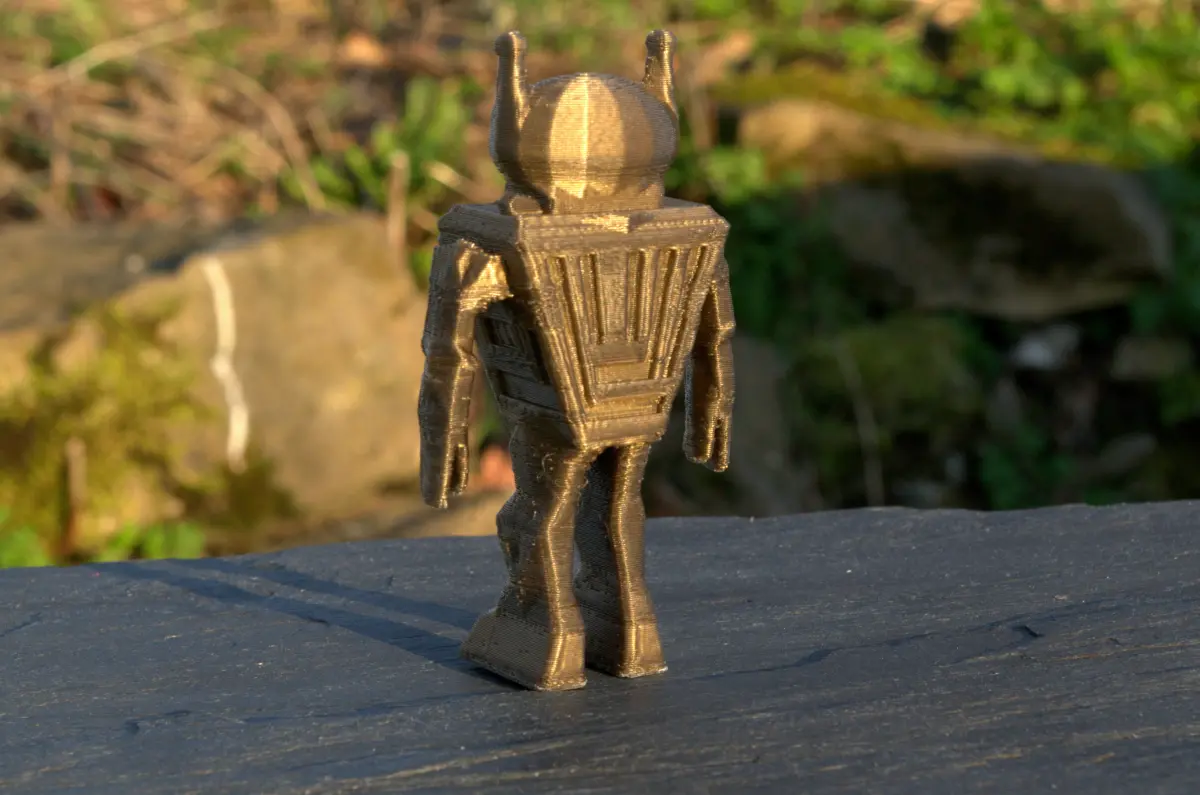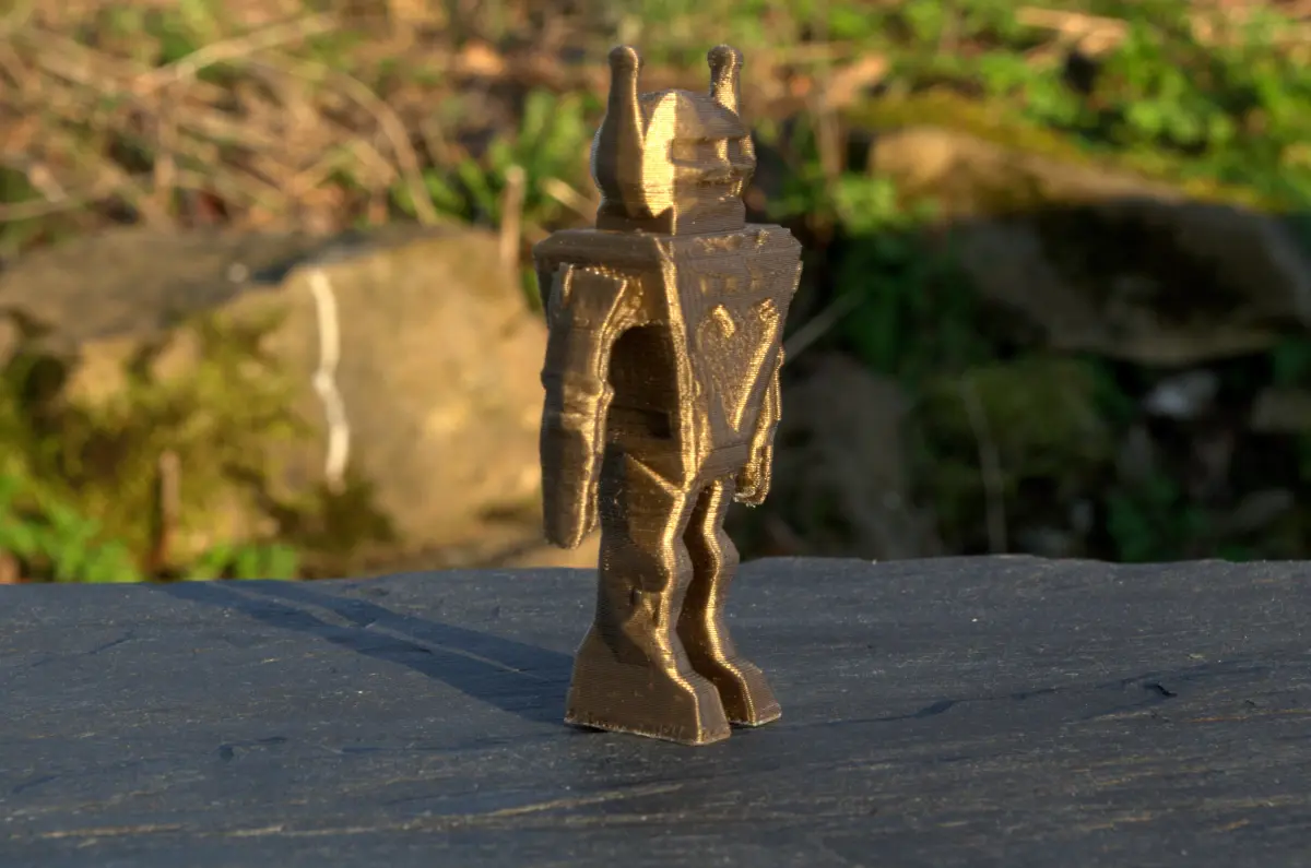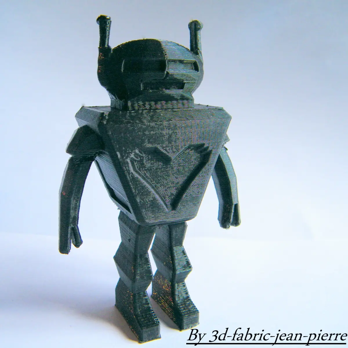 A simple and cute robot with a big heart. this modeling is a tribute to the science fiction of the 60s.Our friend is about four inches tall.It was realized using the blender software.the 3D printing was a RepRap prusa i3 with a black filament for one version and bronze for the other.the use of support was necessary, especially for the overhang of the arms.the height of the layers is 0.3 mm and the nozzle has a diameter of 0.4 mm.it is PLA heated to 200 ° C.I really hope it will brighten your home or office.have fun