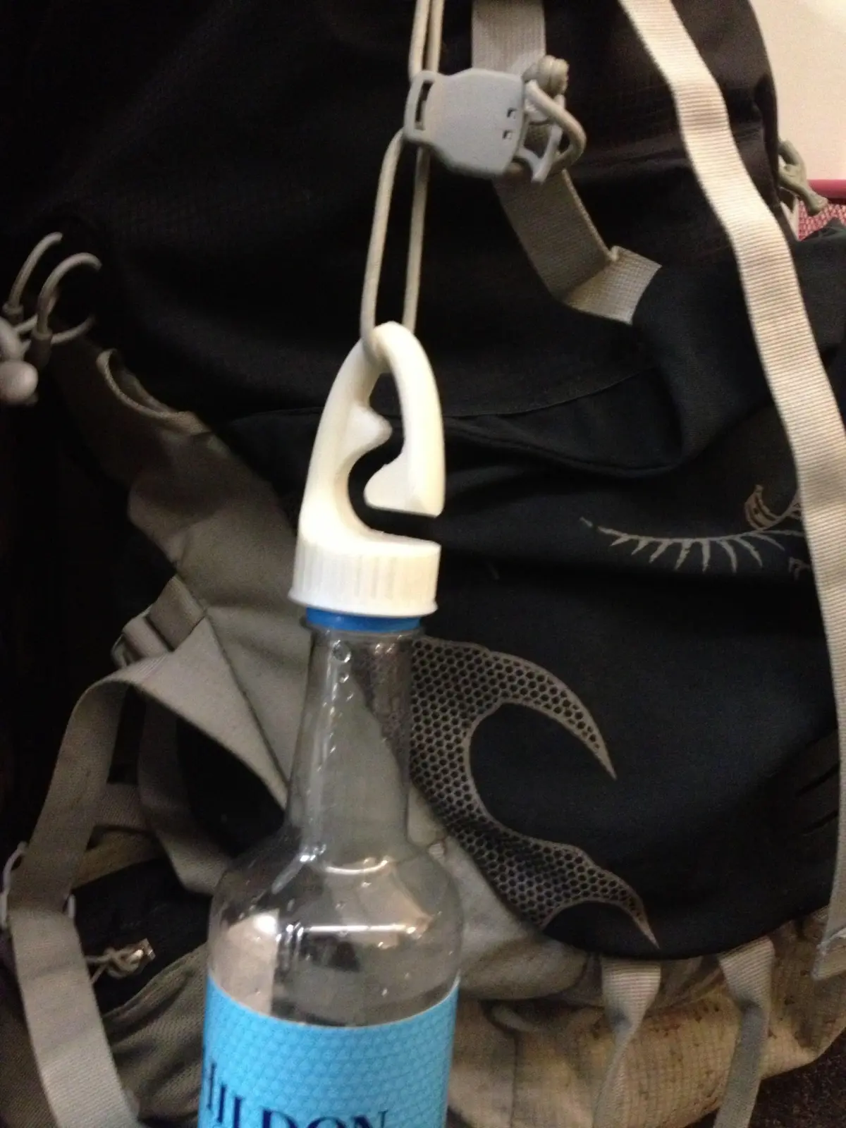 The clip-cap provides a means to attach standard plastic drinks bottles to your rucksack, bag or belt. Developing the design over 8 months the thread on the under side will fit onto nearly all carbonated and fresh water drinks bottles. The snaking clip with ribbed inners ensures that it stays on the bag not the ground.