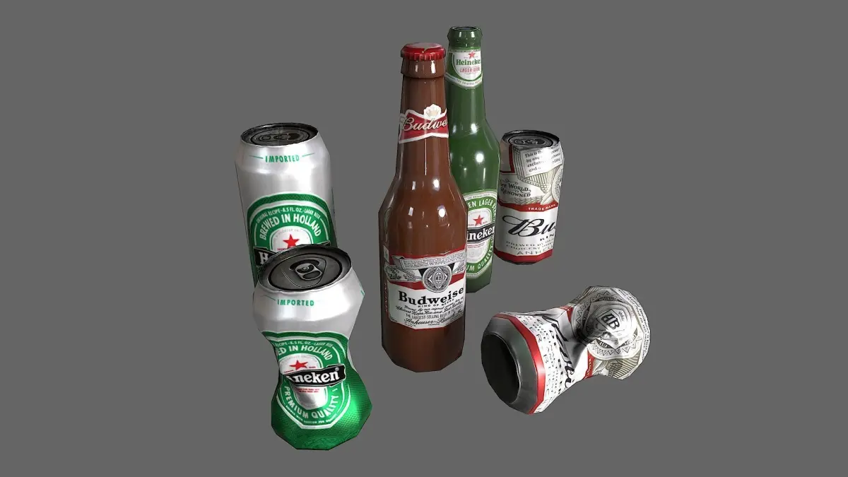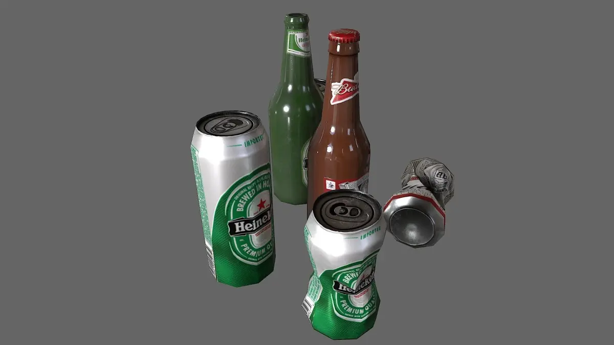 Bottles and cans, model in maya and texter in substance panter .
