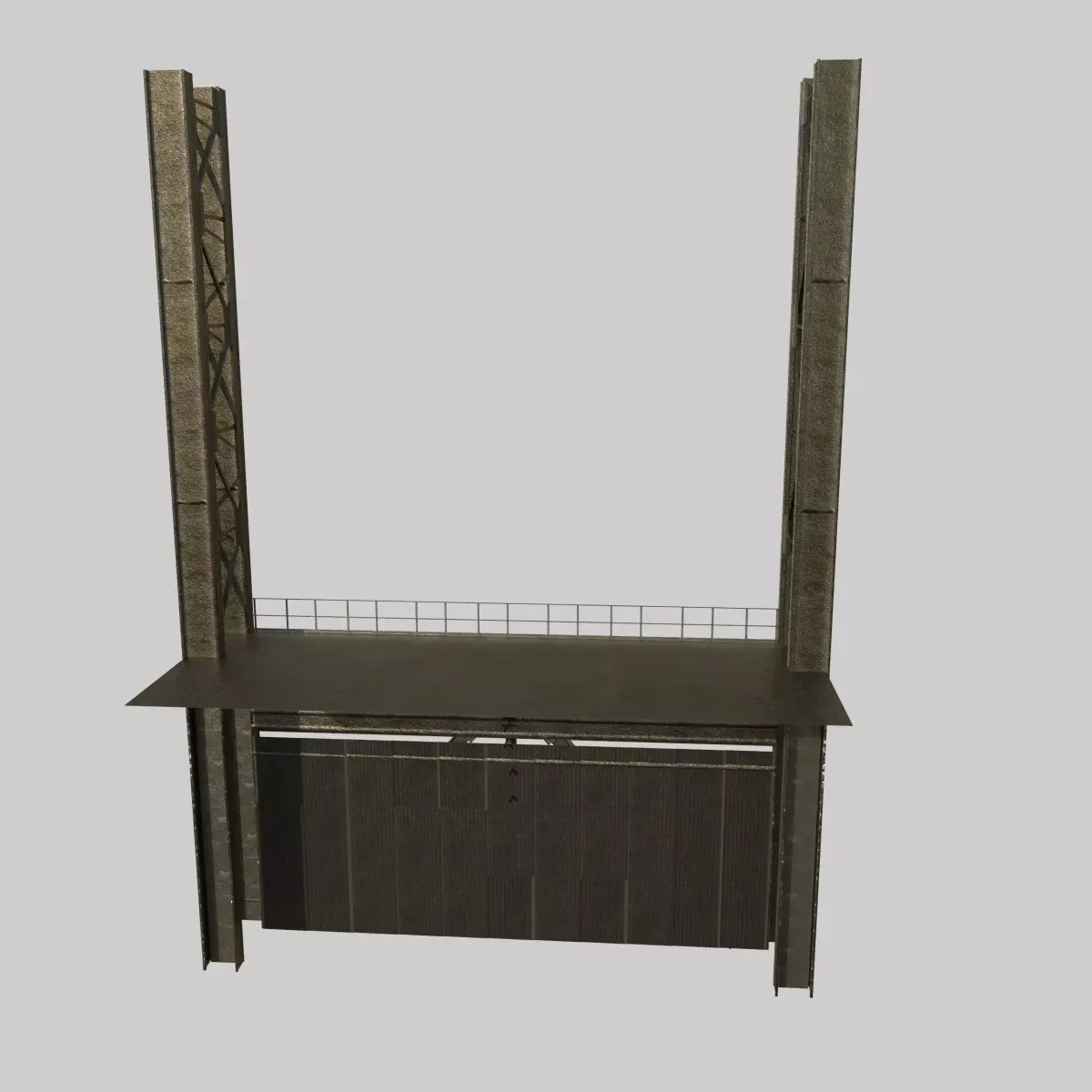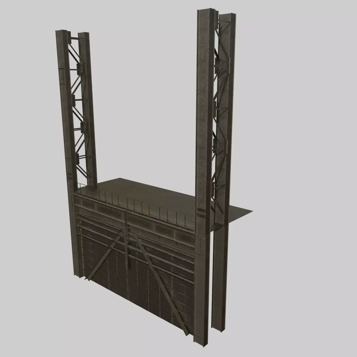 A detailed 3D model of an Industrial Bottom Floor Structure, designed as a support platform or base section for cranes, hoists, or mechanical installations. The model features a robust steel frame, vertical support beams, and metal flooring with railing details, making it ideal for factory simulations, construction scenes, and mechanical assembly visualizations.
