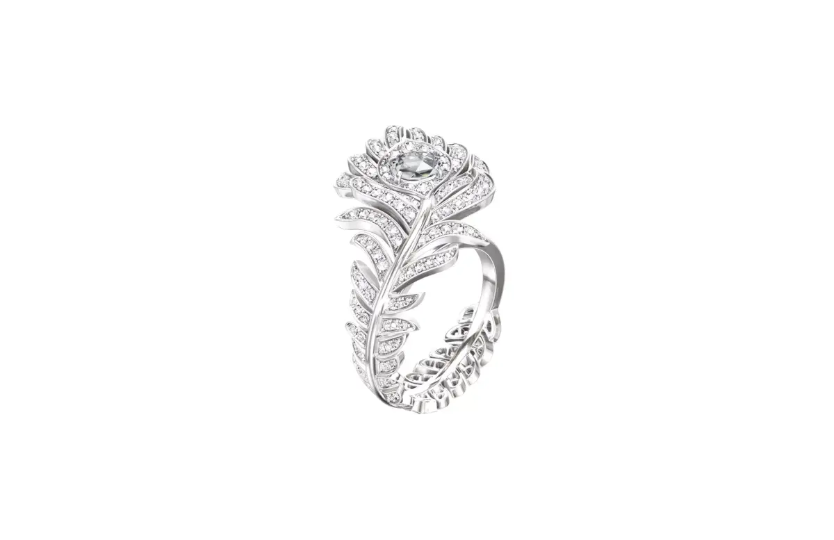 Exact replica of the timeless masterpiece, the medium version of the PLUME DE PAON ring by Boucheron.