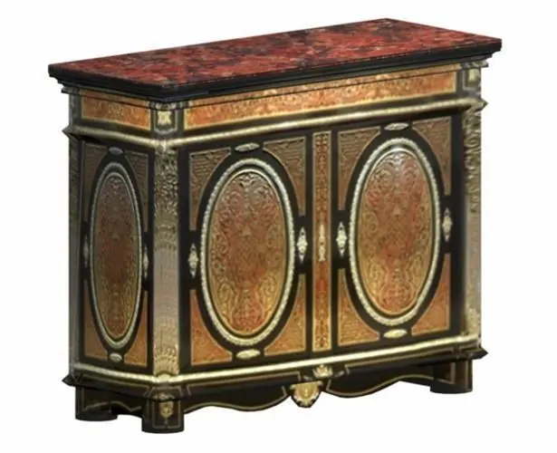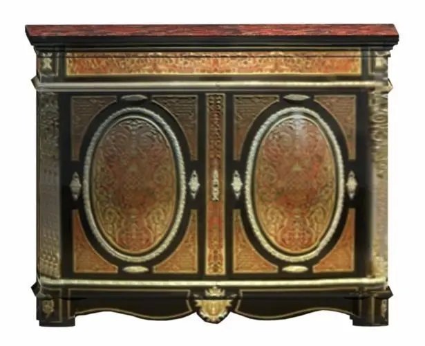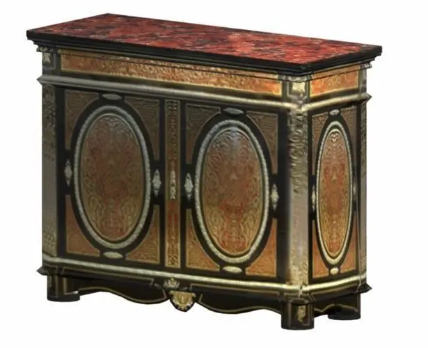 Description: File contains obj/mtl model of a Boulle Cabinet, plus color, bump, trans and gloss/spec maps in 4096 res. Chairs shown may be purchase in Product ID: 672694 - French Provincial Dining Suite (https://www.cgtrader.com/3d-models/furniture-set/living-room-dining-room/french-provincial-dining-suite).