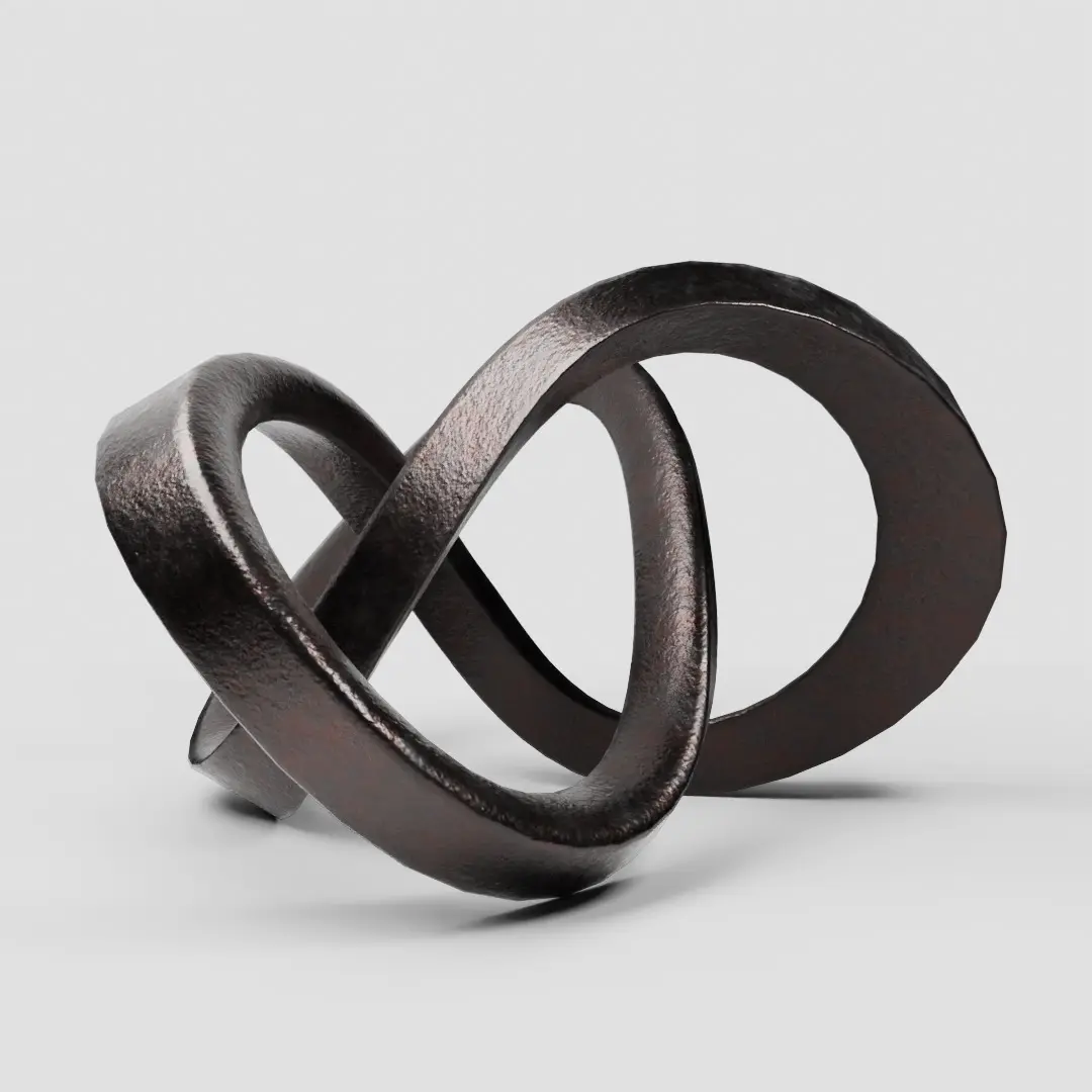 The Boundless Bronze Metal Sculpture Blender 3D model is an elegant, abstract decorative piece designed to elevate modern interior visualizations. Its flowing, looped form and rich bronze finish make it an ideal asset for luxury spaces, gallery scenes, or tabletop decor in architectural renderings.