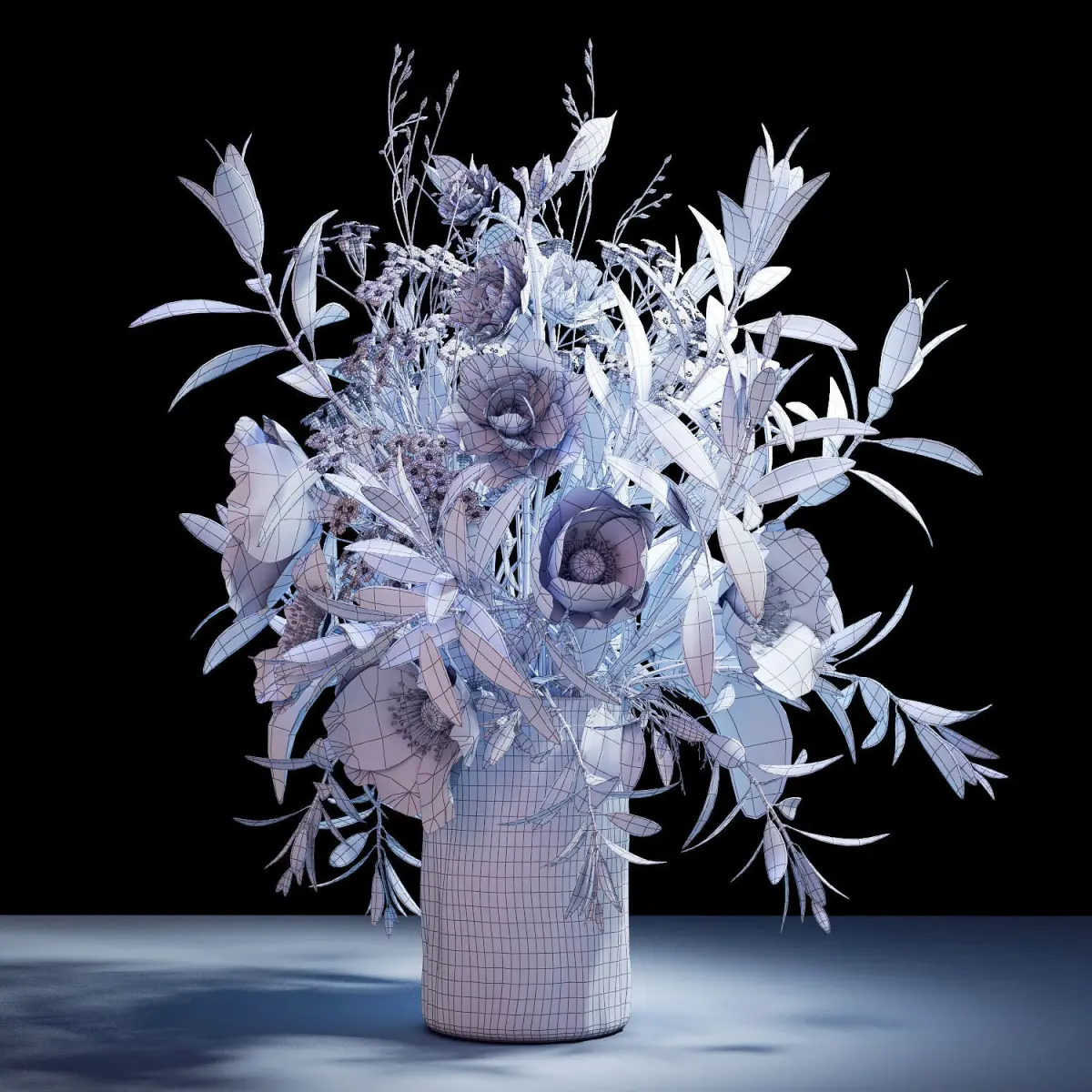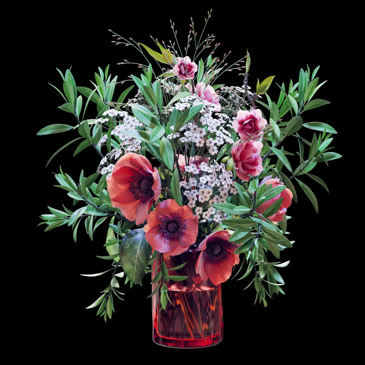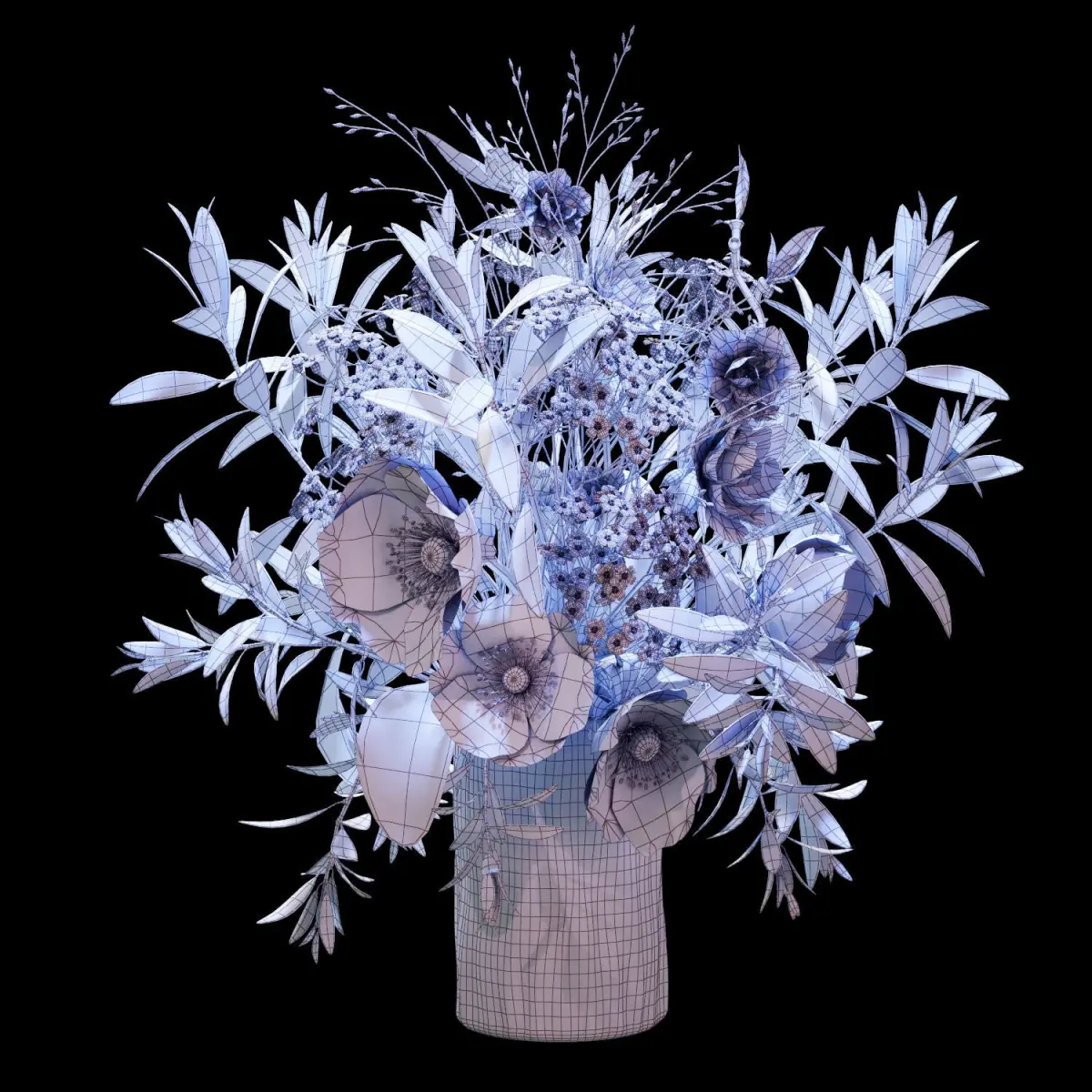 Bouquet: -Cuttings-Anemones-Sakura -Grass