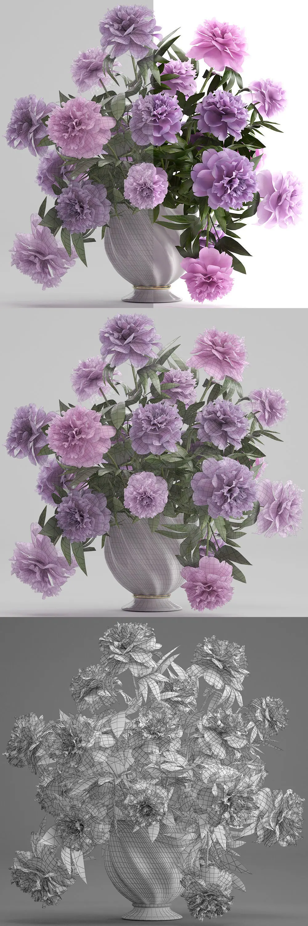Bouquet lilac Peonies peony 3D model