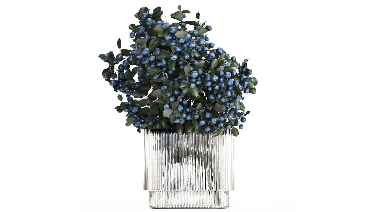 Beautiful summer designer bouquet of blueberry branches in a modern glass vase with berries. Set of 500.Summer bouquetDecorative branches with berries in a vase for the interior.blueberry - blueberry, CyanococcusVaccinium uliginosum - BlueberryPrunus spinosa - Blackthorndecorative bush with berriesBush, blueberry