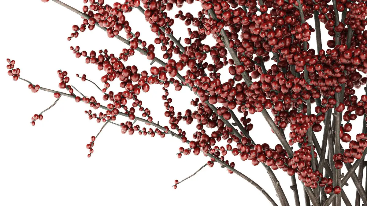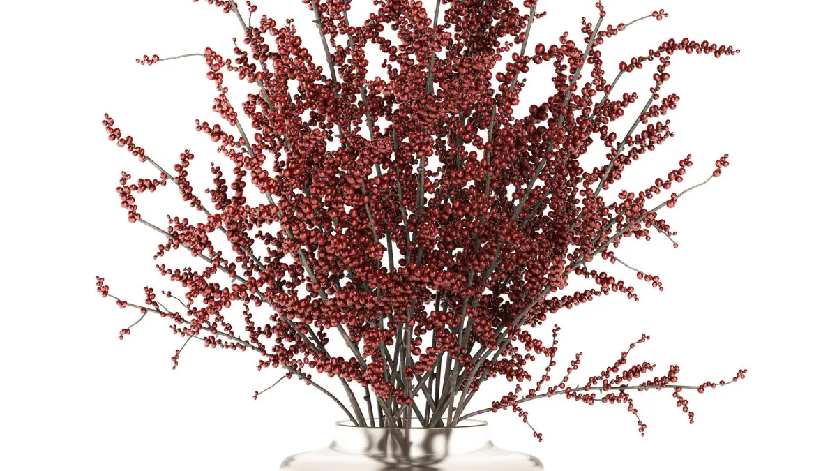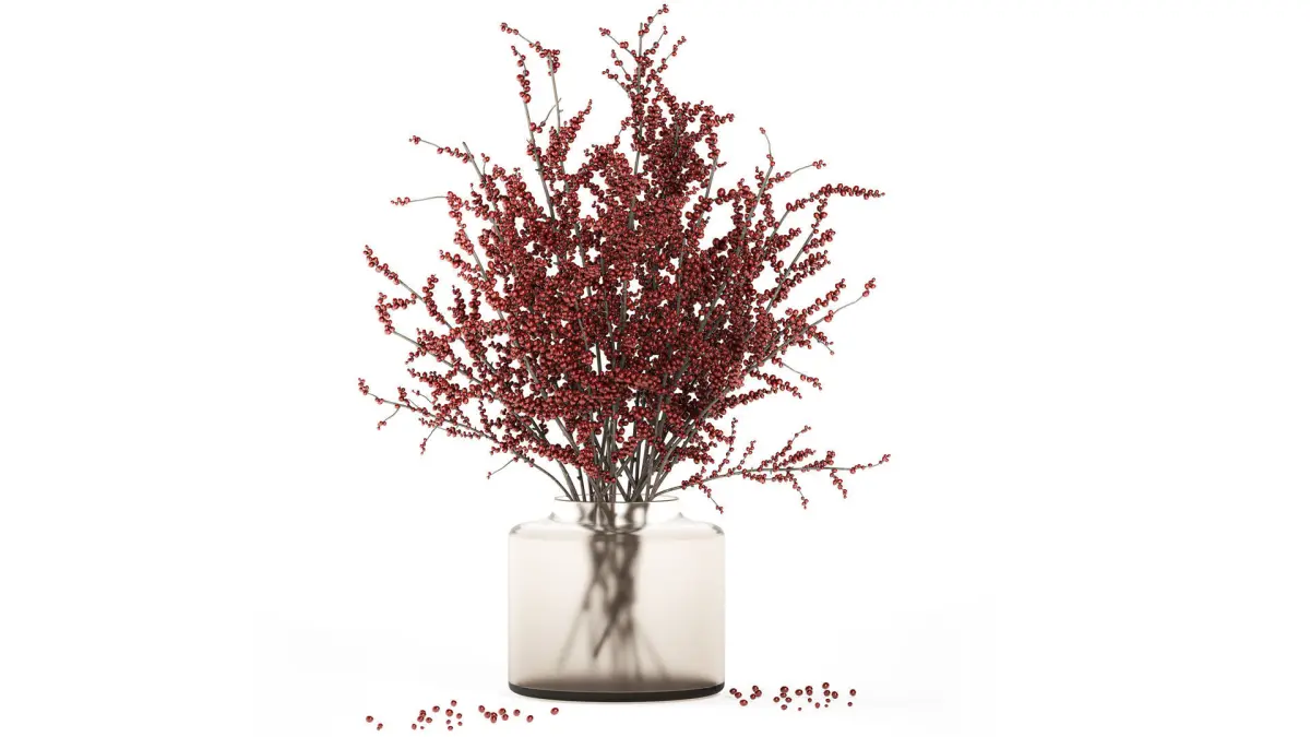Bouquet of branches with red berries ilex vase