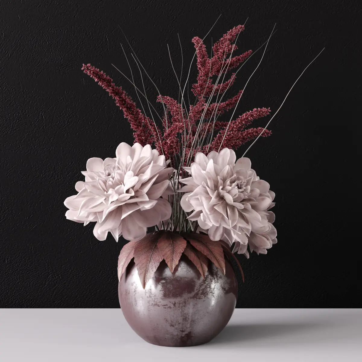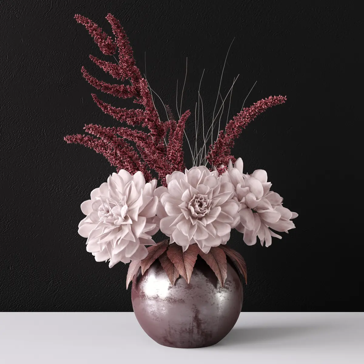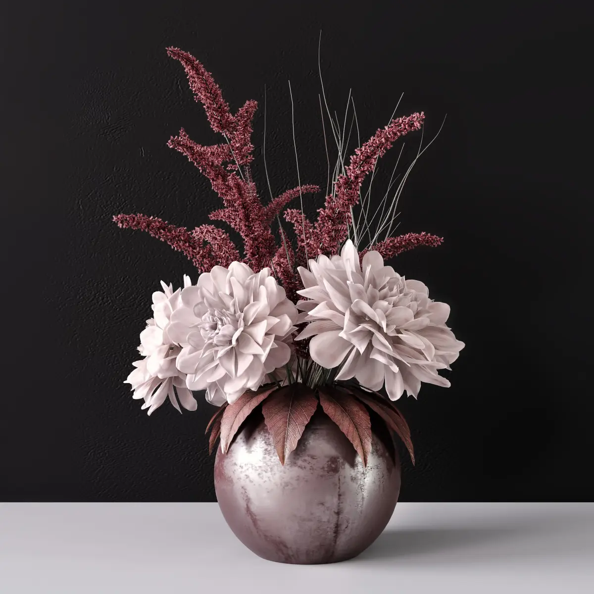 A photorealistic model of a delicate bouquet of flowers in a vase;