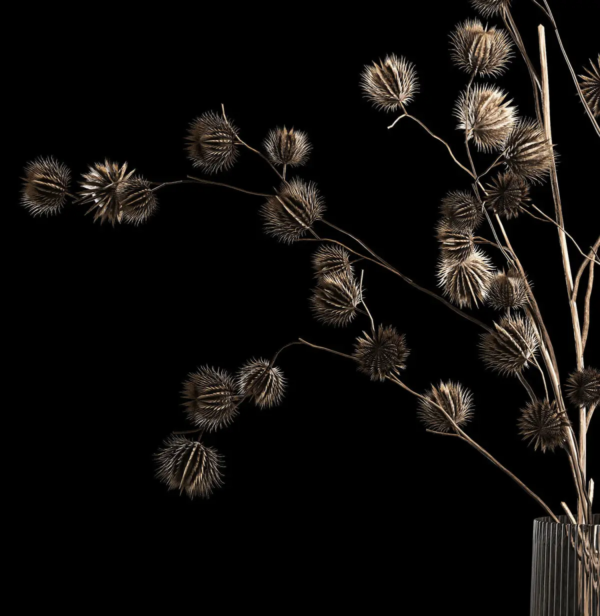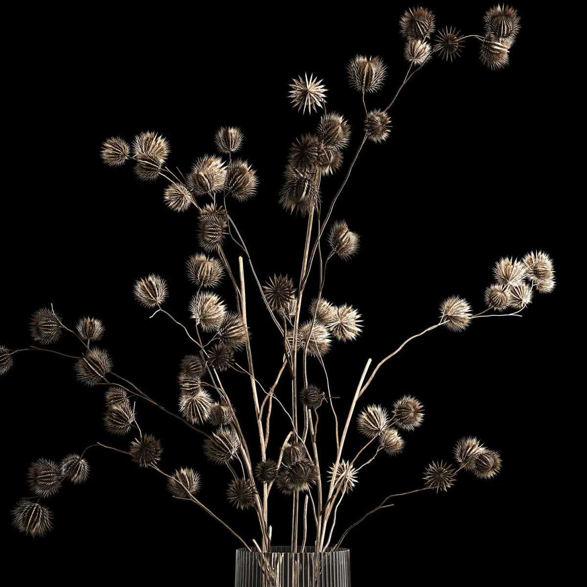 Decorative Bouquets of dried flowers in vases for decoration and interior.Bouquet of dried flowers.Vase LSA INTERNATIONALPleat Vase - Gray - H26cmglass vaseDry branches, dry thorns, branches with thorns, thorn.Arctium - Great burdock, burdock, burdockdry thornsdried flower, branches, thorns, eco, decor, dry, thorn, vase, branches with thorns, natural decor, eco design, dry branches, glass, bouquet, thorn