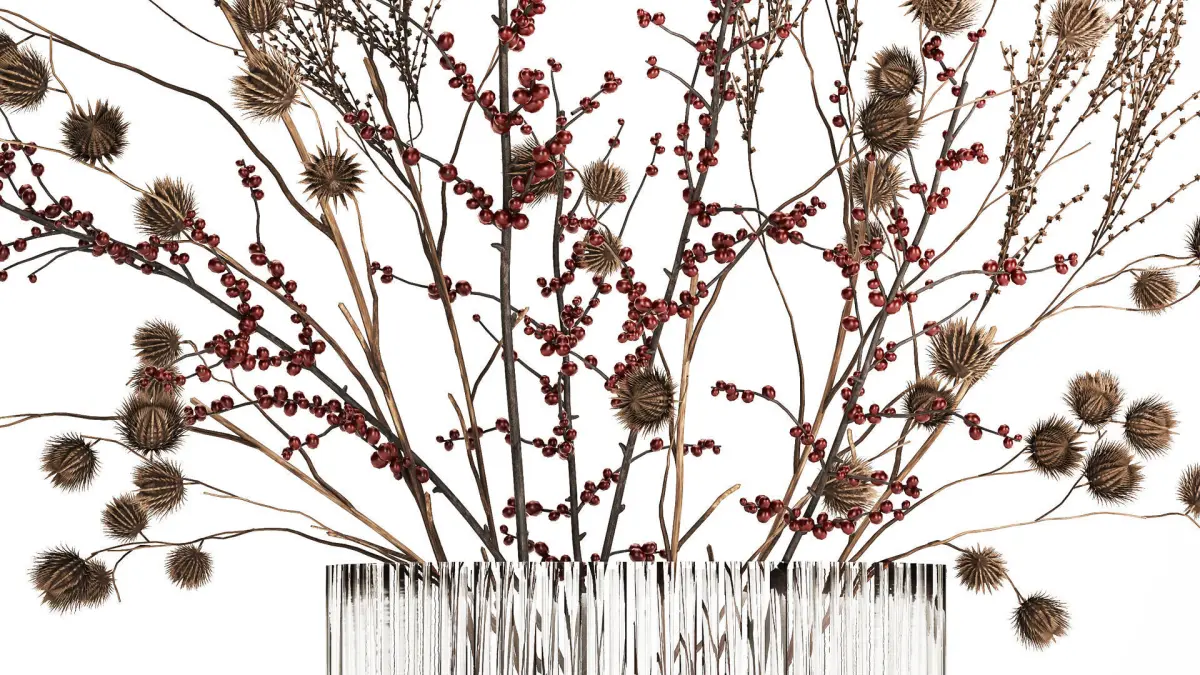 a bouquet of thorns, thorn, carduus, Thistle, dry thorns, bluehead, chertogon, thistle, dried flowers, branches, thorns, eco, decor, dry, vase with thorns, dry branches, glass, decoration, burdock, large, agrimony, burdock, a bouquet of dried flowers, dried, glass, thistle bouquet, thistle thorns, thistle branches, branch vase, branches in a vase, vase with branches, bouquet of dried flowers, beautiful bouquet, dried flowers in a vase, dry bouquet, Ilex, Holly, Red berries, berries on branches, glass vase, modern vase, 2.hm, H&M HOME, bouquet of dry branches