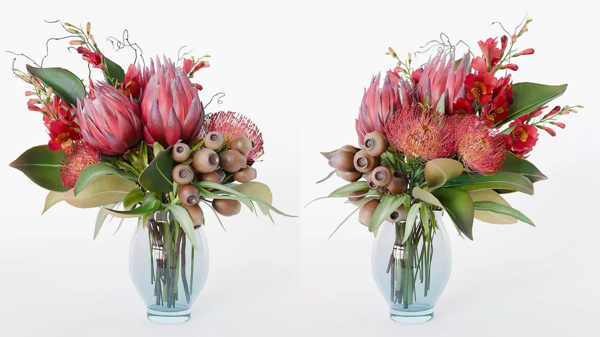 3d model bouquet of red protea flowers