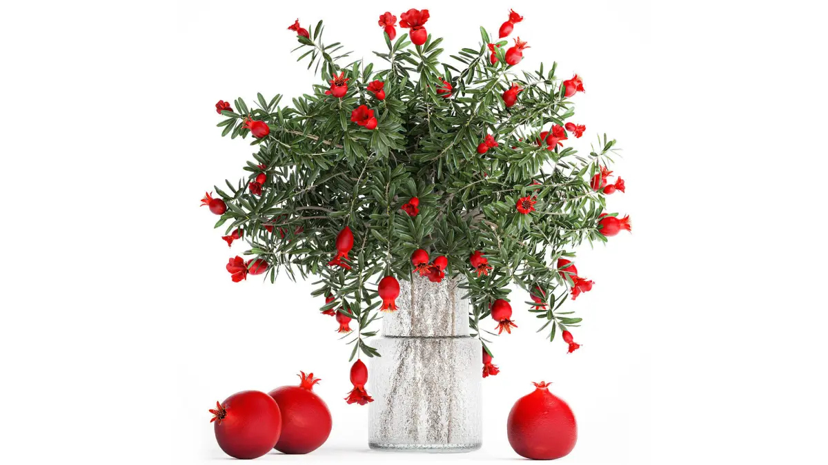 Lush beautiful bouquet of flowers and branches of a blooming pomegranate with green leaves in a modern glass vase, pomegranate. Set 386.Decorative Bouquet of white flowers in a glass vase for decoration and interior.Bouquet of garden tree branches, bouquet of green branches from the gardenbouquet of green leaves and branchesvase with branches, branches in a vaseBouquet of branches of blooming pomegranatepomegranate, garnet - PomegranateBlooming pomegranatePomegranate fruitvase