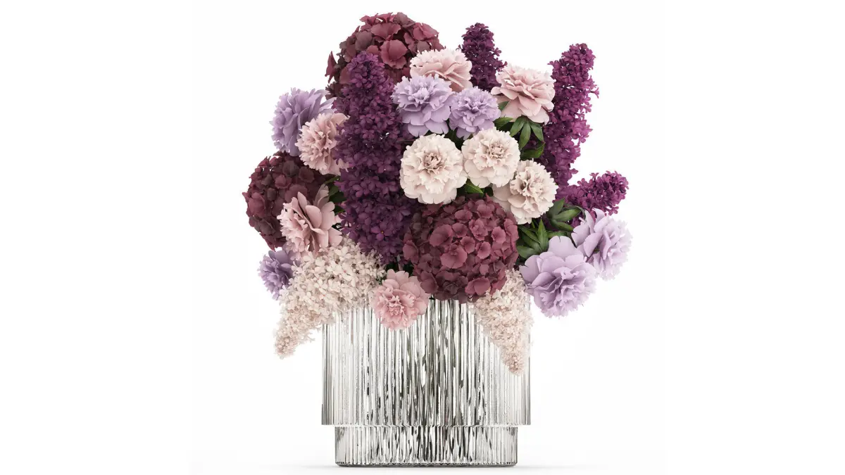 Beautiful lush festive bouquet of flowers in a modern glass vase of lilacs, peonies, hydrangea. Set 506.Spring bouquethydrangea - hydrangeaPaeonia, peony - White PeoniesSpring bouquetPaeonia - PeoniesSyringa - Lilacvases - 2.hm, H&M HOME