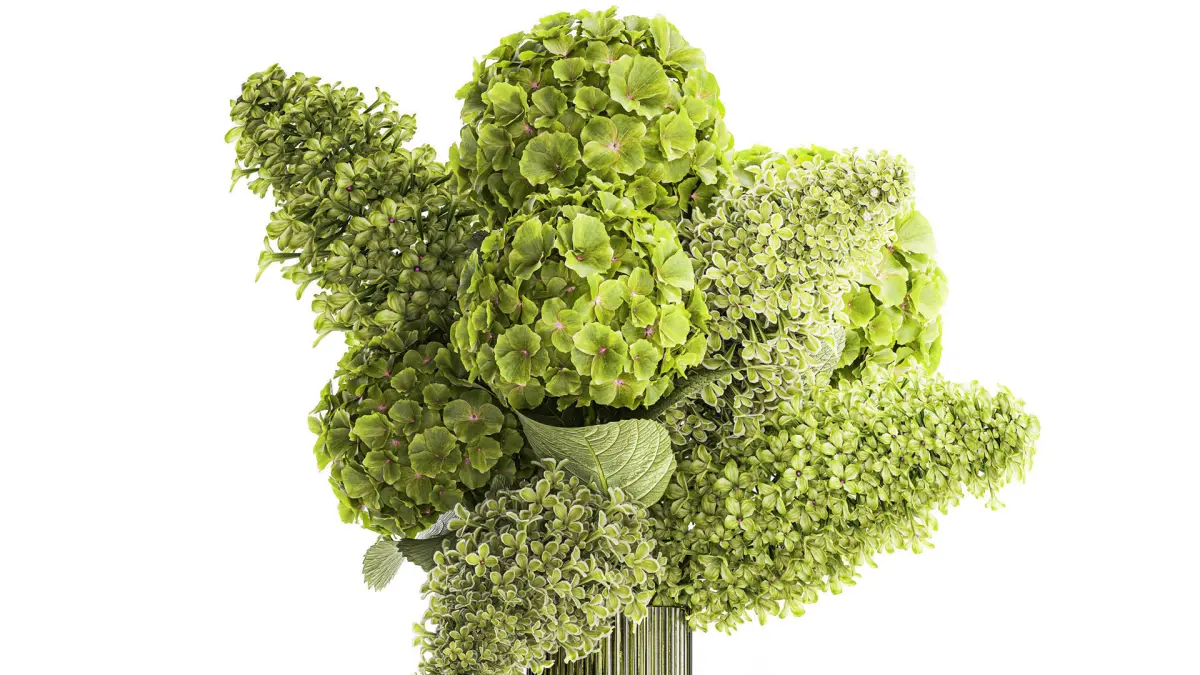 Bouquet of green flowers in a vase hydrangea lilac