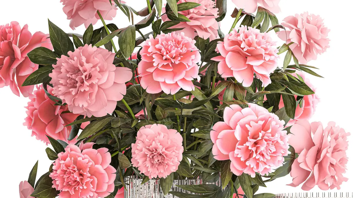 Beautiful formal bouquet of pink flowers in a modern glass vase made of peony. Set 378.Paeonia, peony - PeoniesSpring bouquetvase - 2.hm, H&M HOME