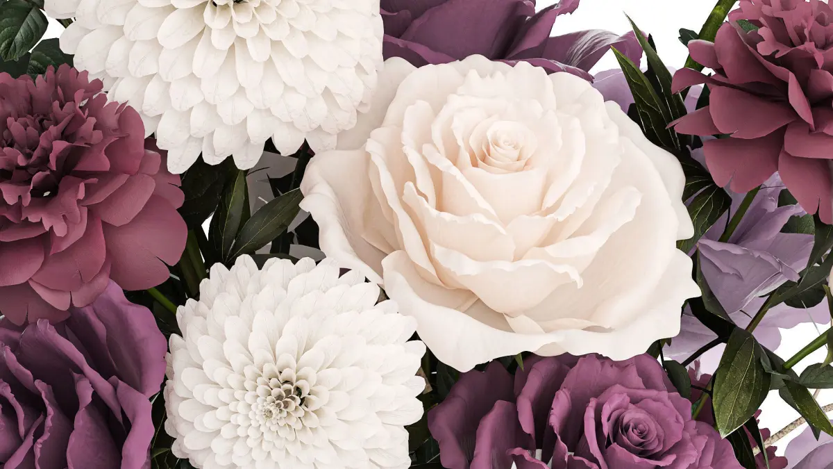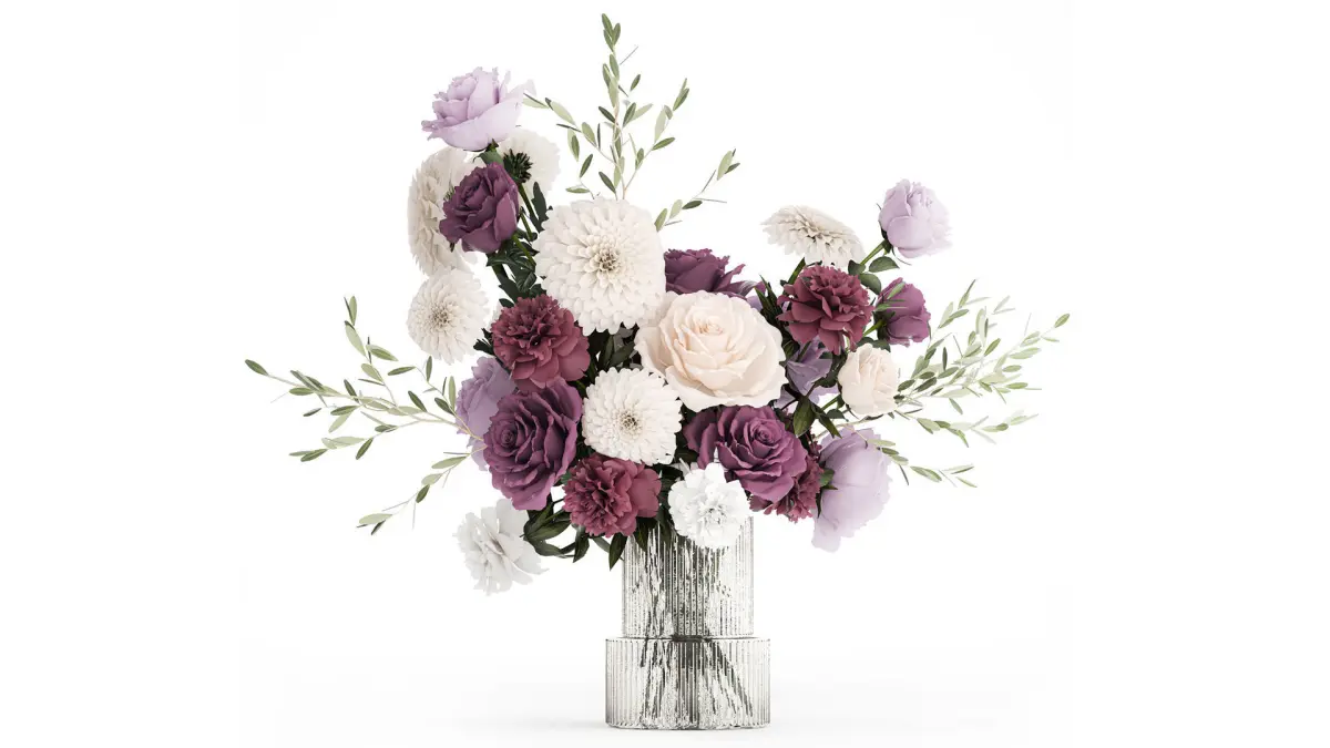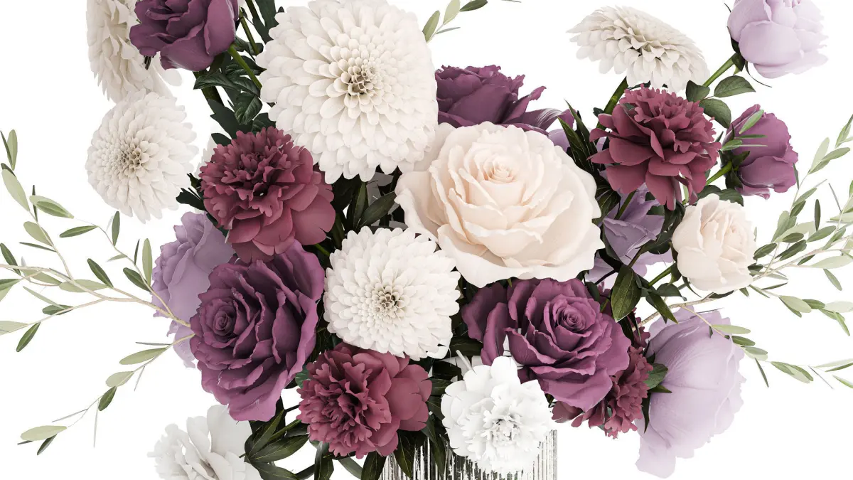 Beautiful small bouquet of purple and white flowers in a modern glass vase, chrysanthemum, rose, peonies. Set 395.Decorative Bouquet of white flowers in a glass vase for decoration and interior.Bouquet of branches and flowersbouquet of green leaves and branchesvase with branches, branches in a vaseSpring bouquetPaeonia, peony - PeoniesRose - pink and white rosesOlive branch in a vasedahlia - Dahliaschrysanthemum, golden-daisy - Chrysanthemumvases - 2.hm, H&M HOME
