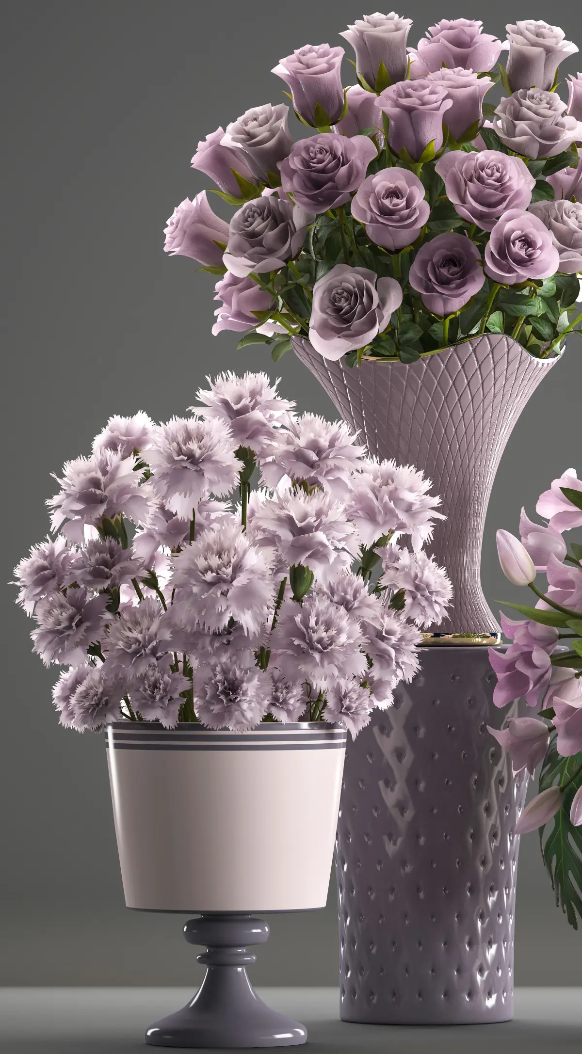 Bouquet of flowersBouquet of rosesglass vasewhiteDianthus caryophyllus, Carnationpink roses in a vasepink tulipspinklilac
