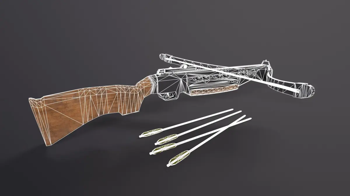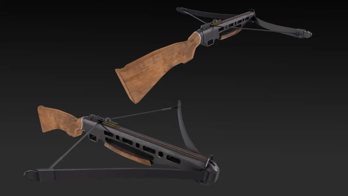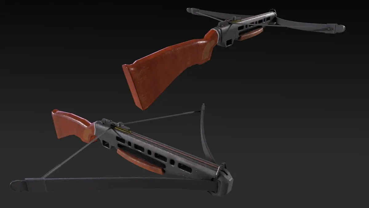 Crossbow Gun - Bow Gun Crossbow is a weapon for use in videogames and Virtual Reality VR simulations. Bow and the crossbow base are seperate as individual pieces and can be used as such. 2 variations with open and closed bow, with and without the bow in the slot. 3D model created in 3ds Max, rendered out in real time using Marmoset Toolbag, assisted with Adobe Photoshop CC and detail baking high to low poly, other detail painting in Substance Painter.