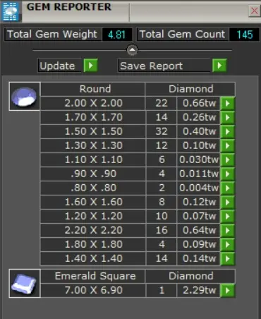 Diamond Size and Carat Weight: 144 Brilliant Cut Diamonds and 1 Emerald Cut Diamond. Total Diamond Weight 4.81 carats. Check the Diamond Chart attached in the image.