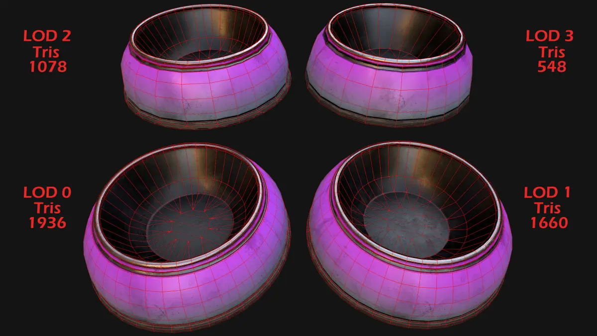 - Tris: 1936(LOD0),1660(LOD1),1078(LOD2),548(LOD3).